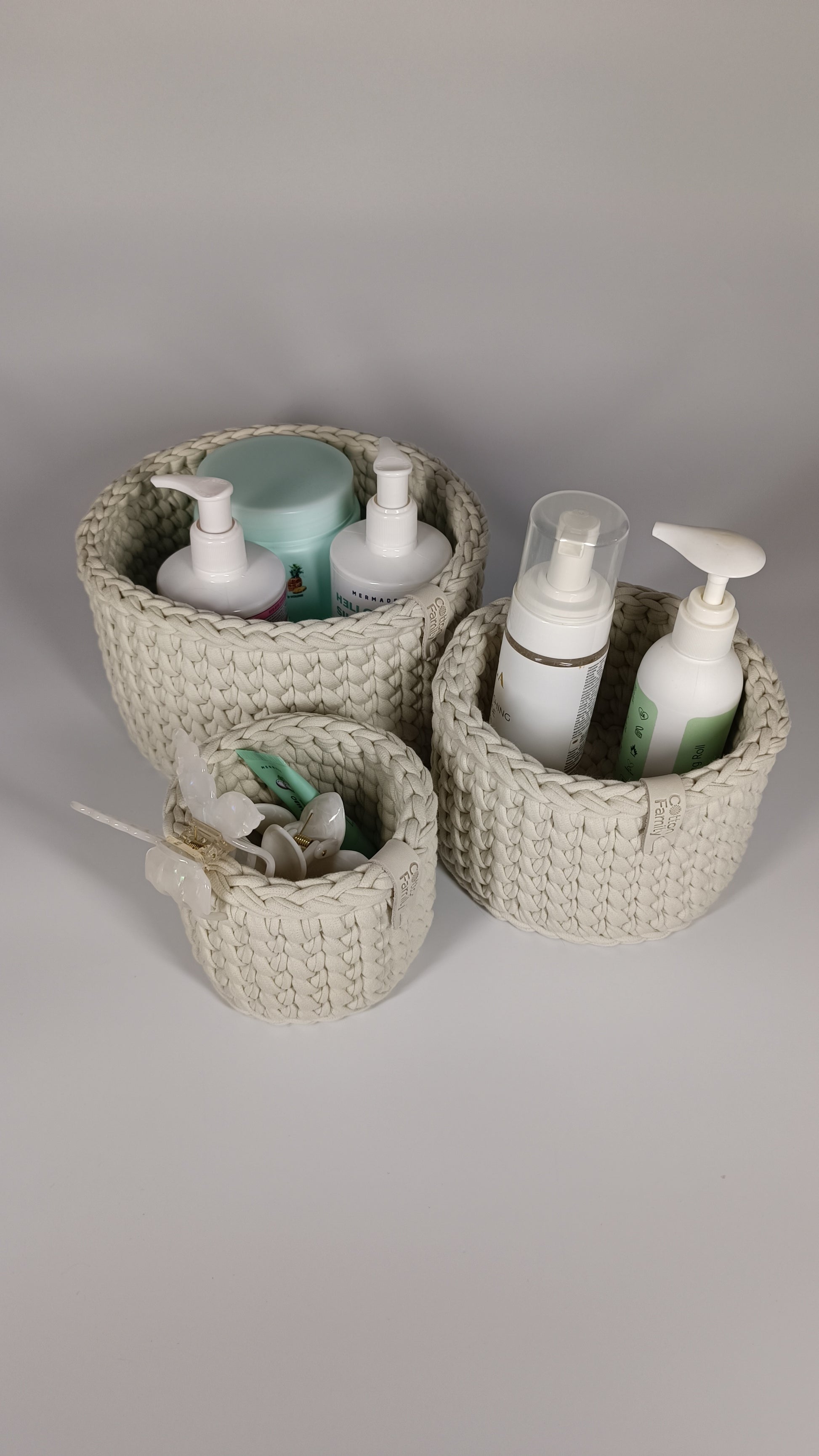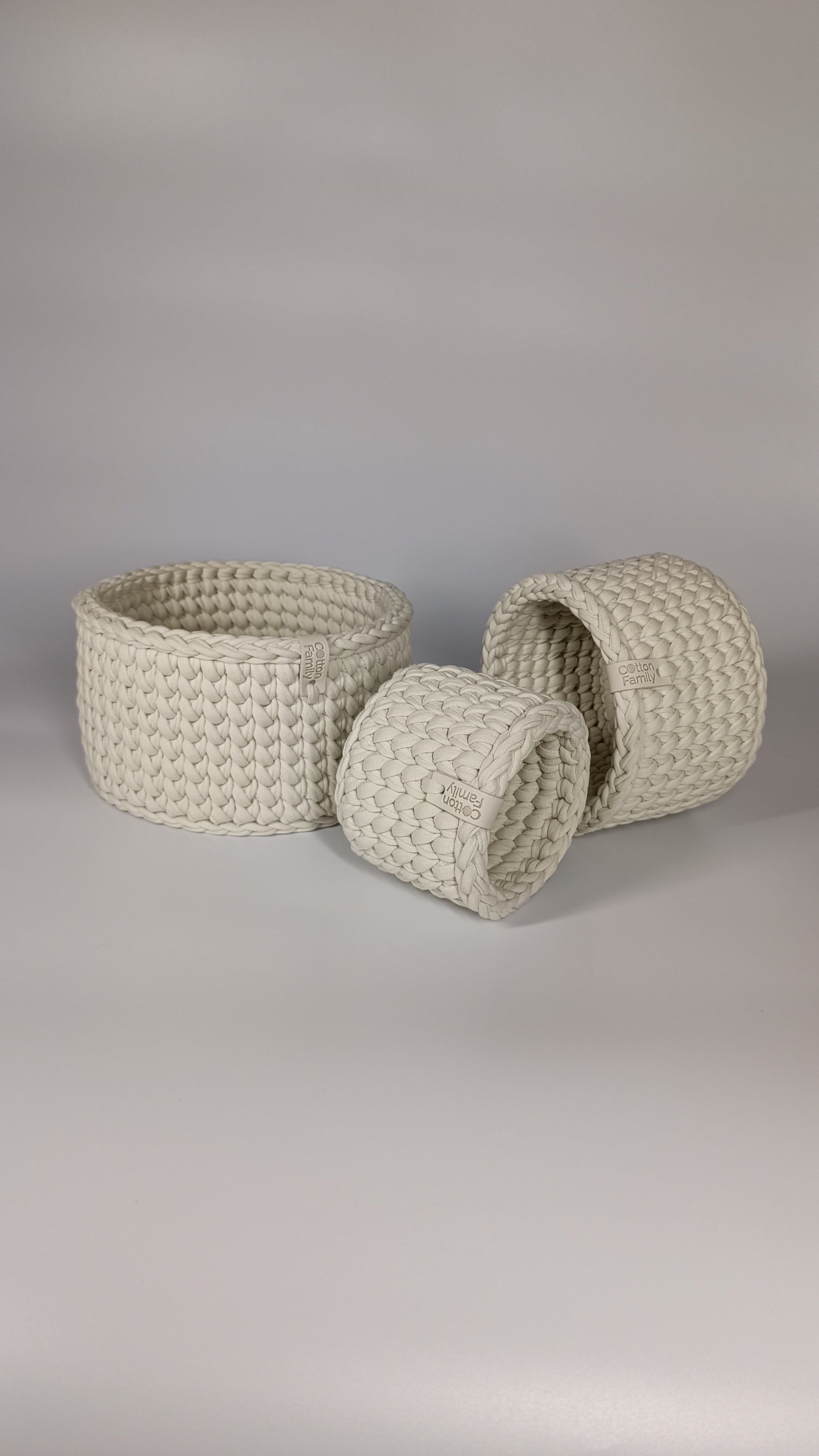 “CLASSIC” Set of 3 Round Crochet Organizer Baskets — Ivory