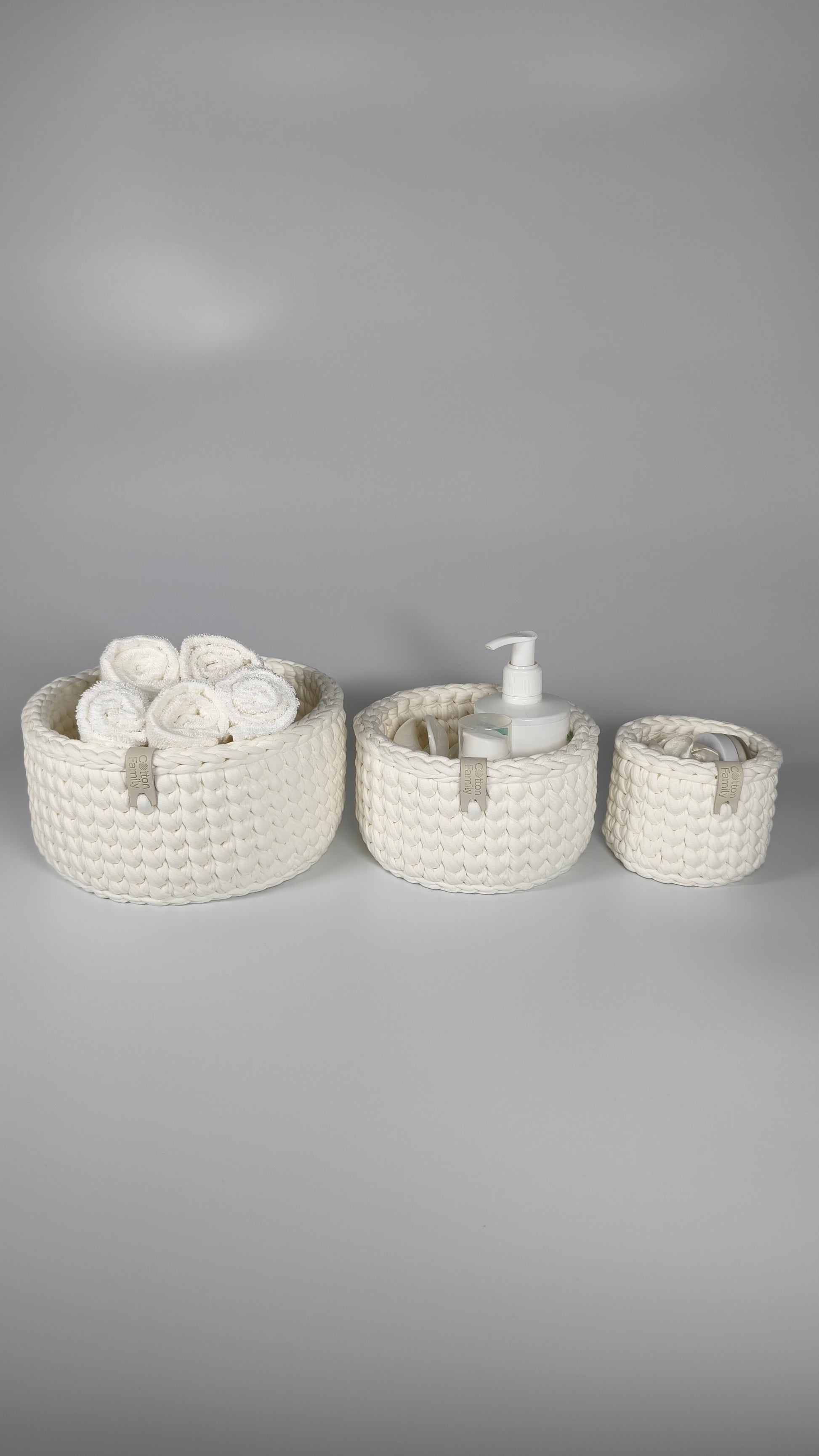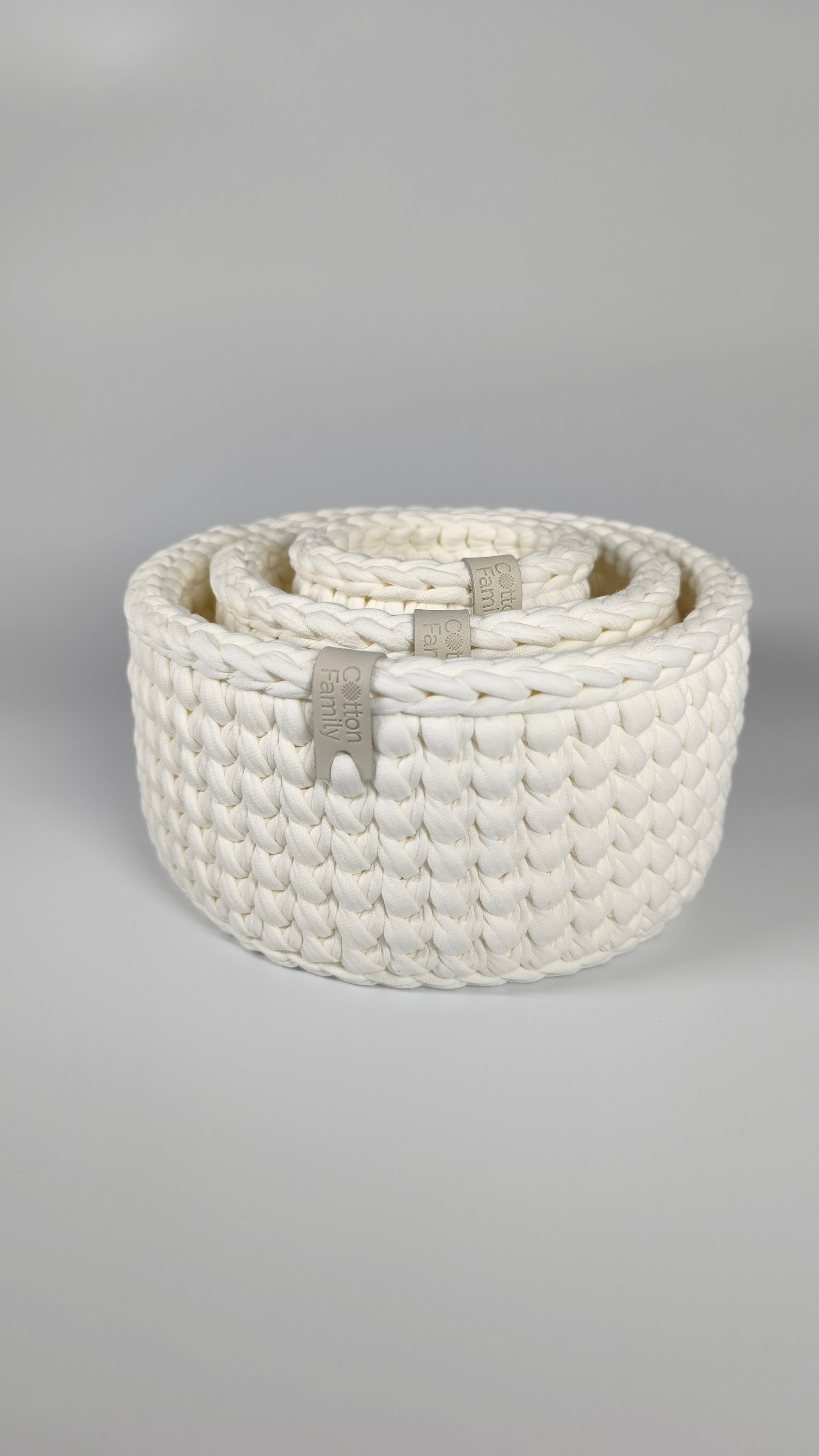 CLASSIC Set — Milk | Handmade Round Crochet Storage Baskets (Set of 3)
