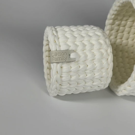 The CLASSIC Collection includes three fully crocheted baskets with seamless knitted bottoms, creating a smooth, structured shape that holds beautifully.