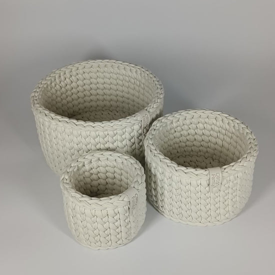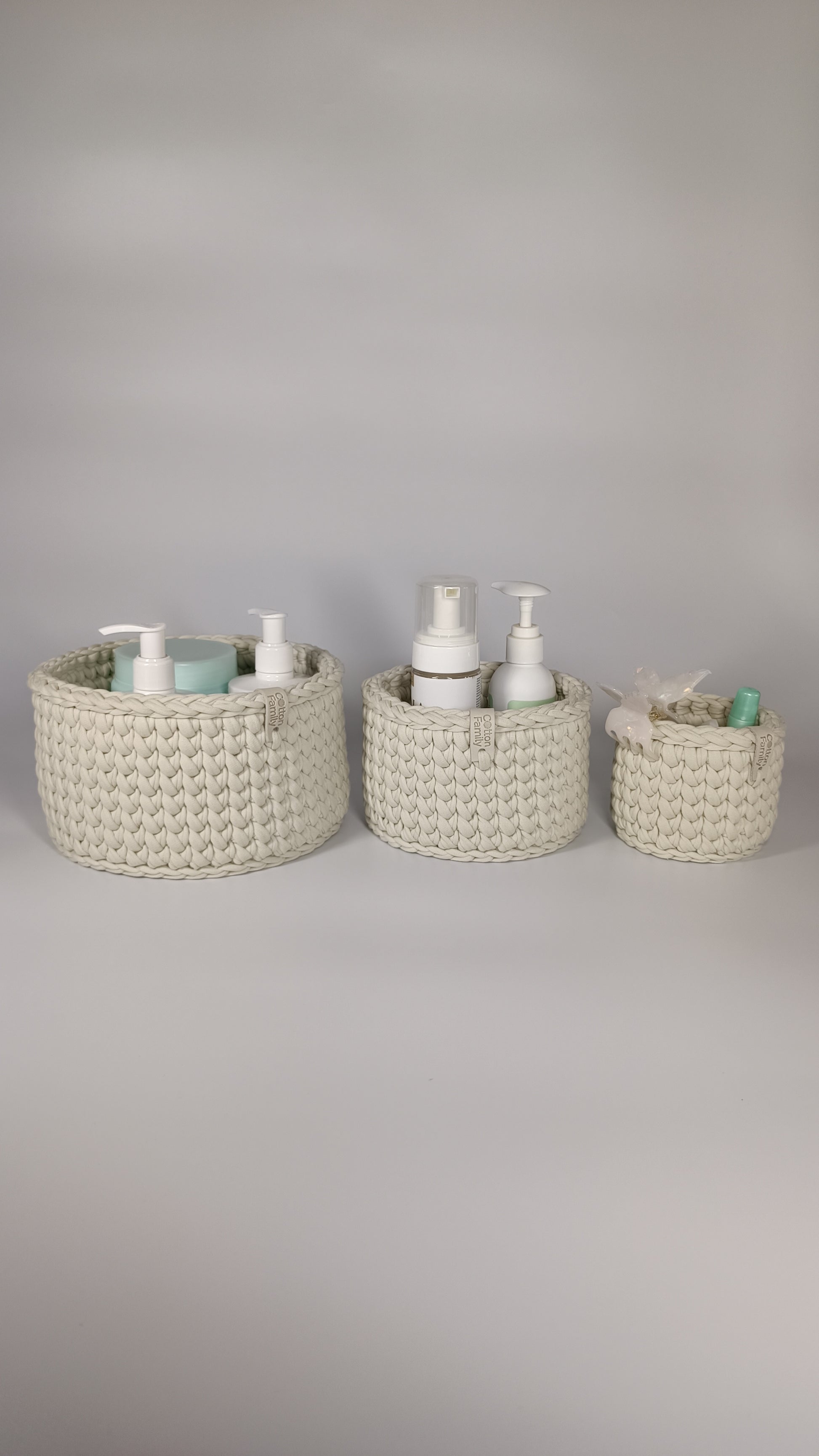 CLASSIC Set — Ivory | Handmade Round Crochet Storage Baskets (Set of 3)