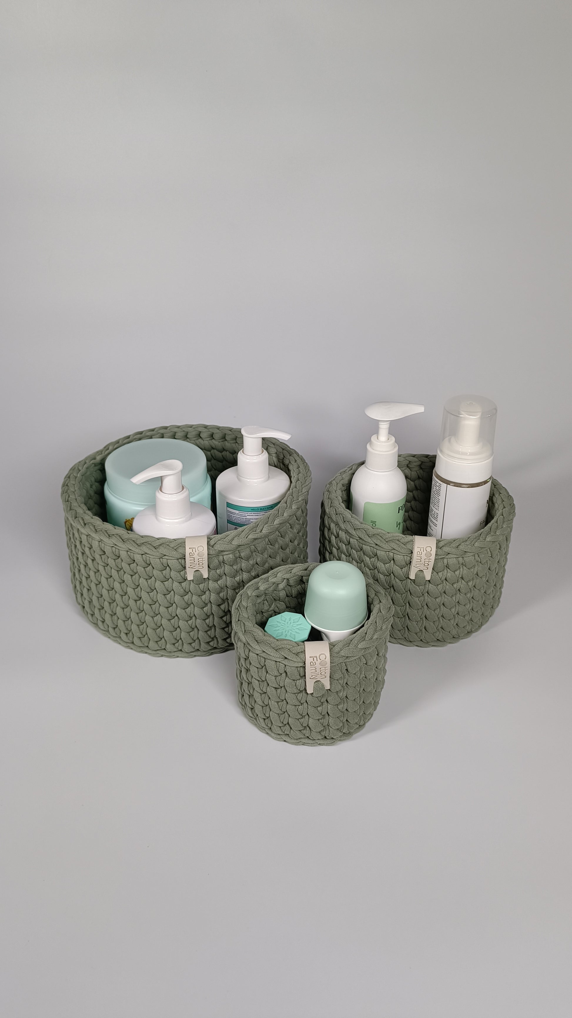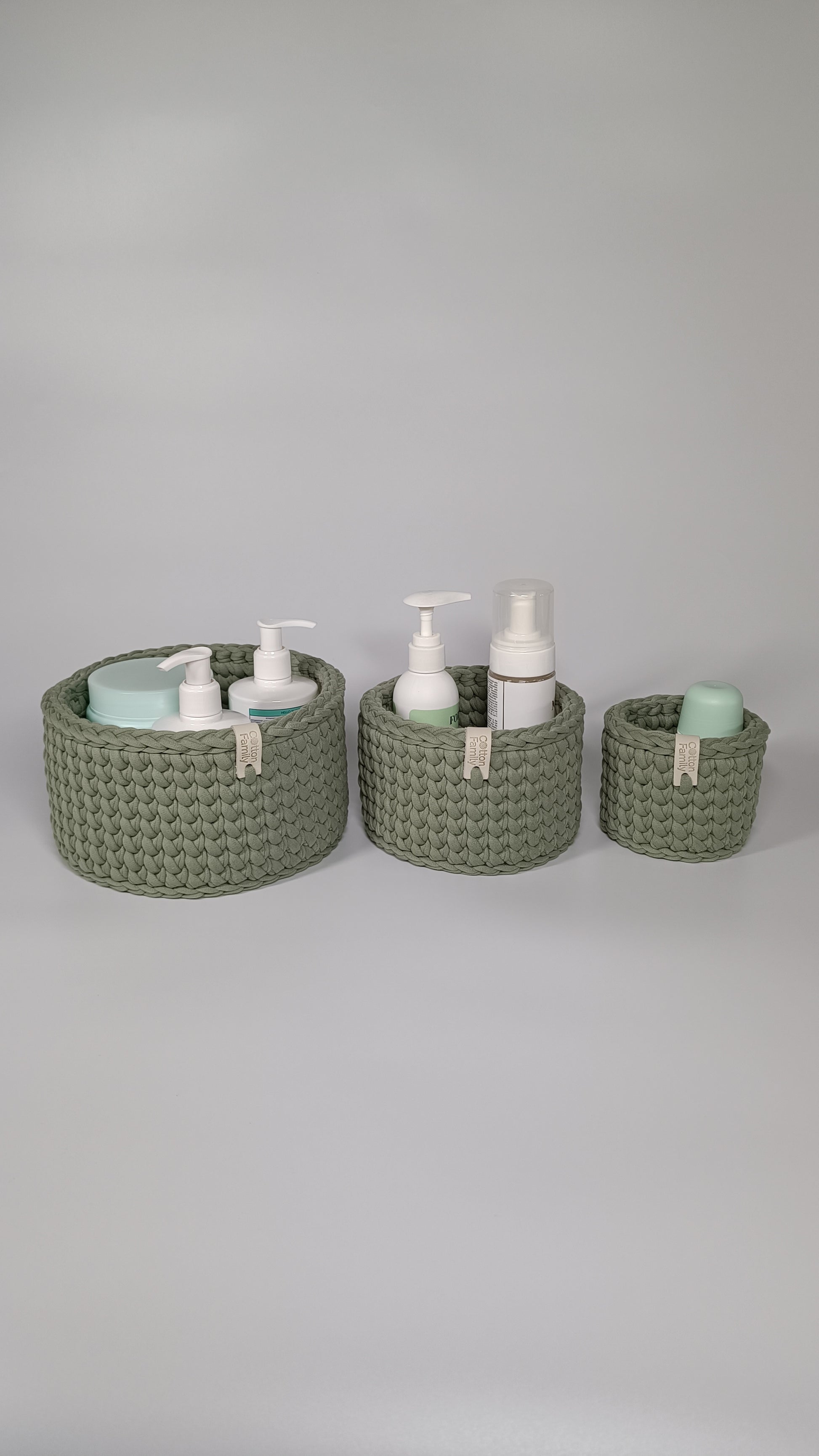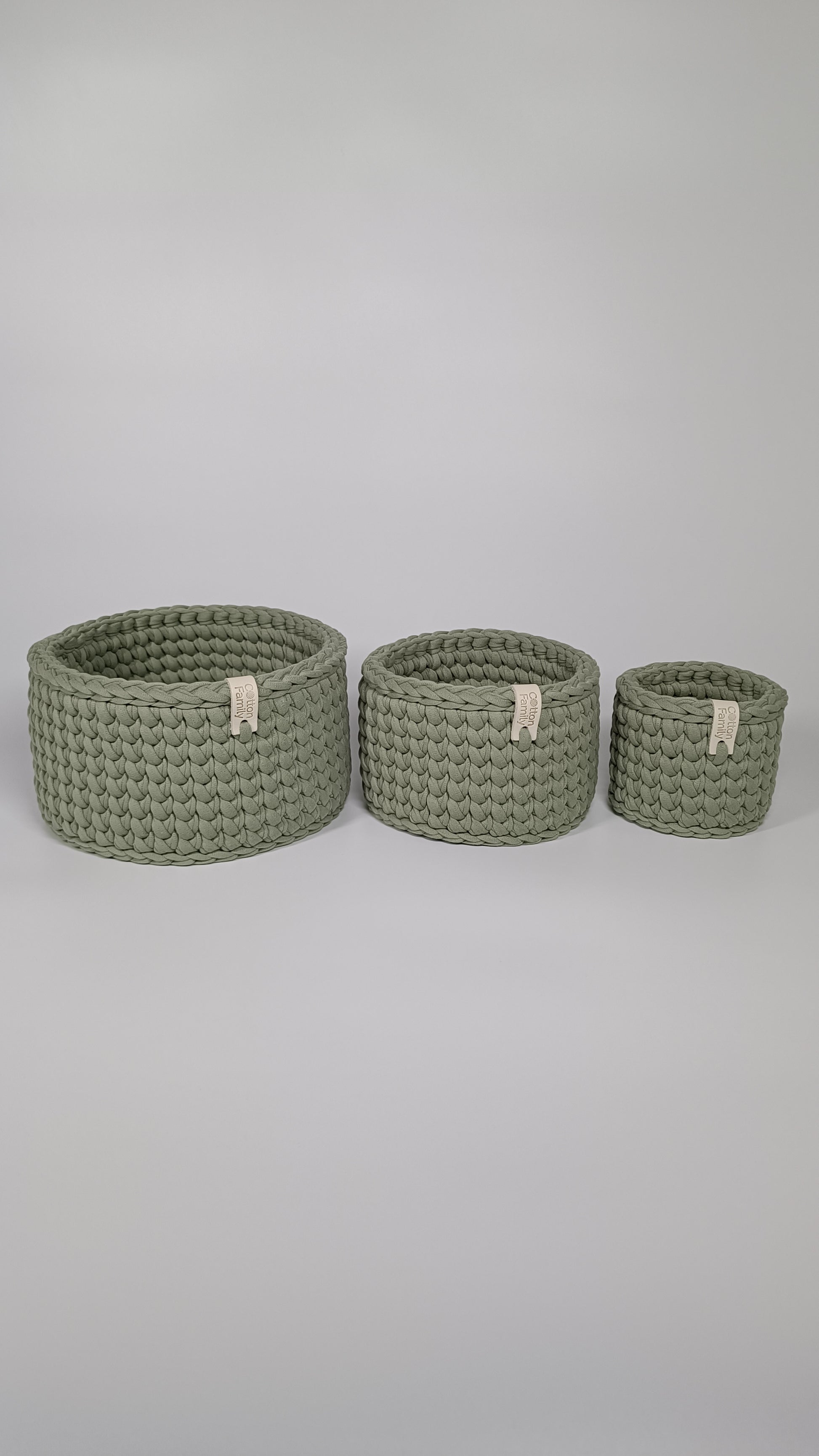 CLASSIC Set — Sage Mist | Handmade Round Crochet Storage Baskets (Set of 3)