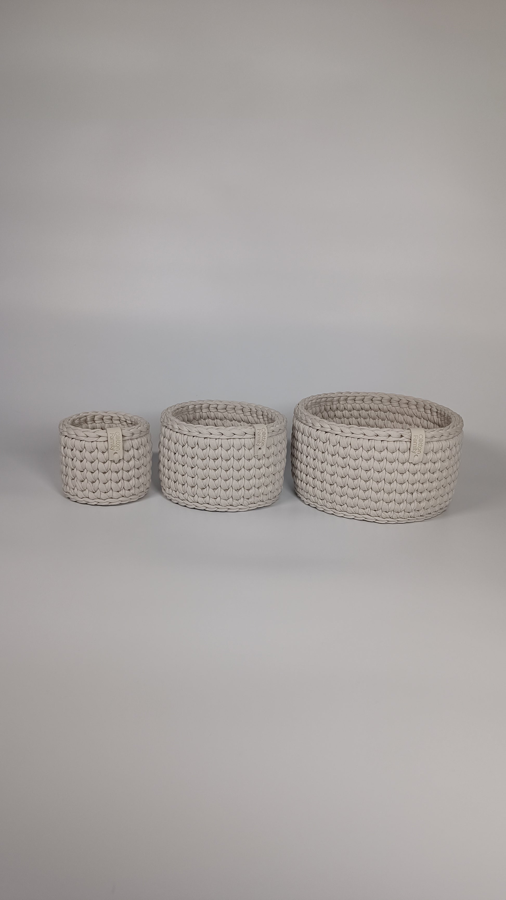 CLASSIC Set — Stone | Handmade Round Crochet Storage Baskets (Set of 3)