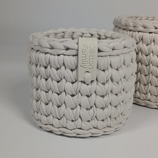 Fully crocheted with knitted bottoms, the baskets hold a smooth, structured form with a pleasant handmade texture.