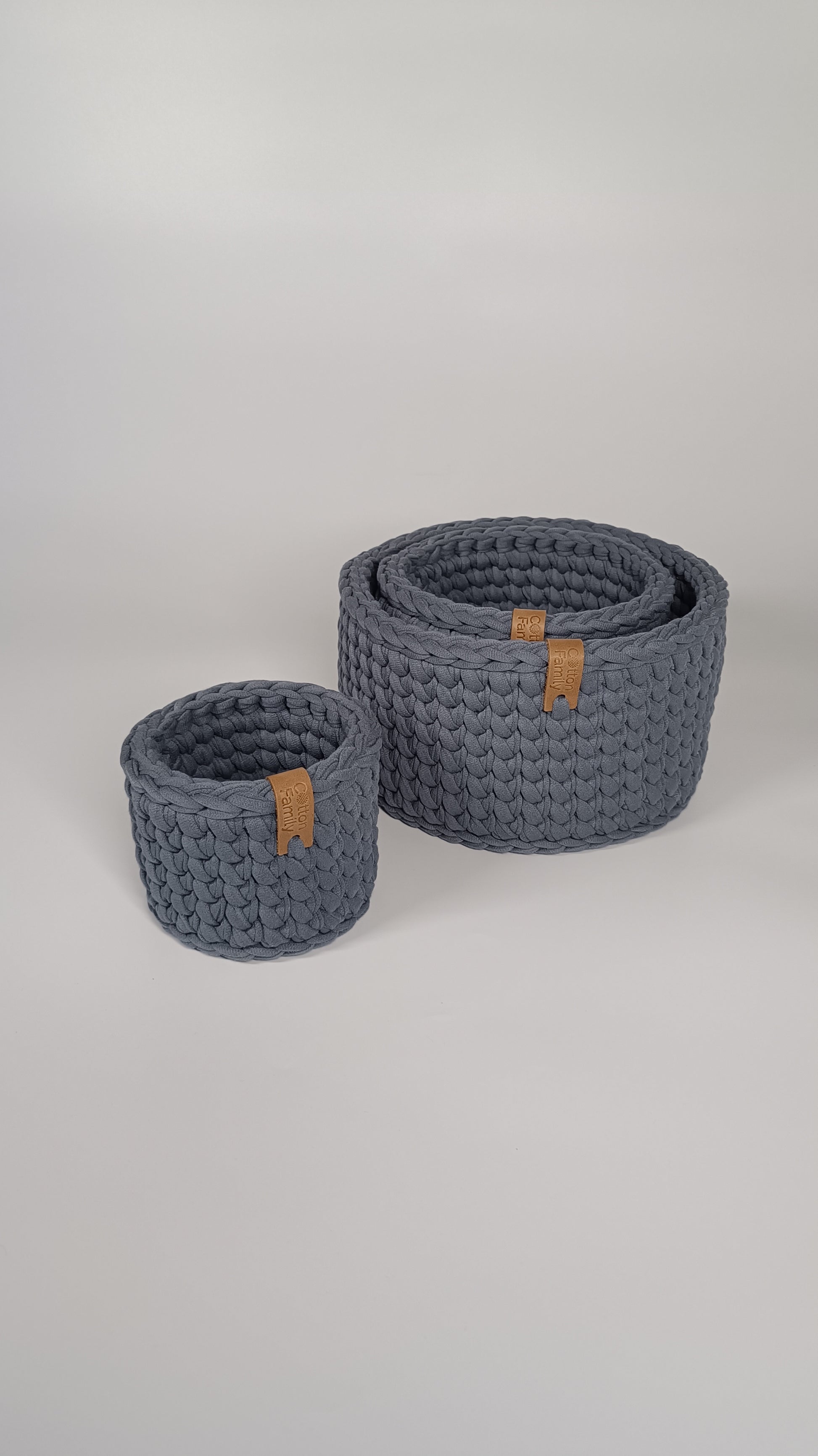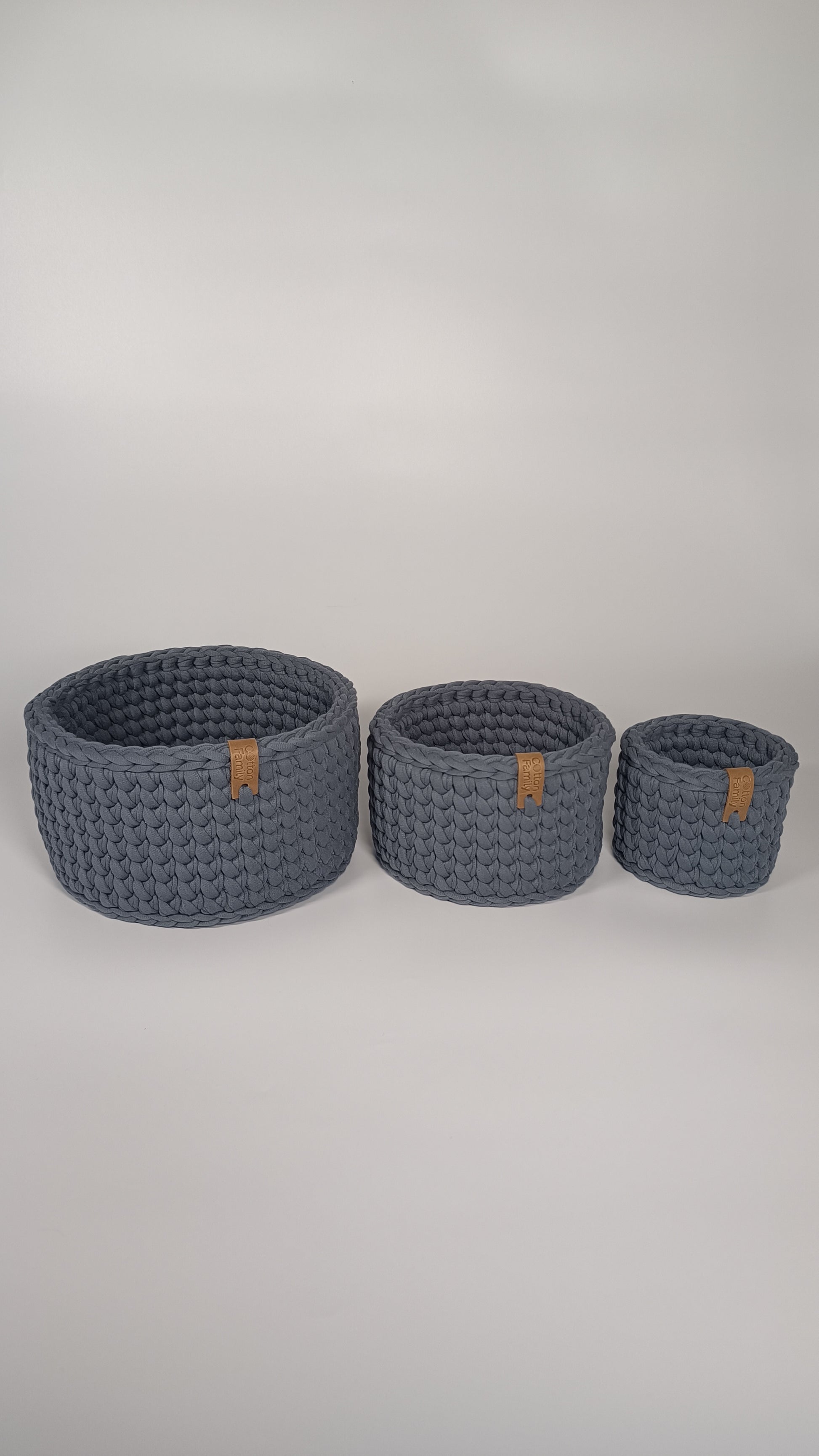 CLASSIC Set — Storm | Handmade Round Crochet Storage Baskets (Set of 3)