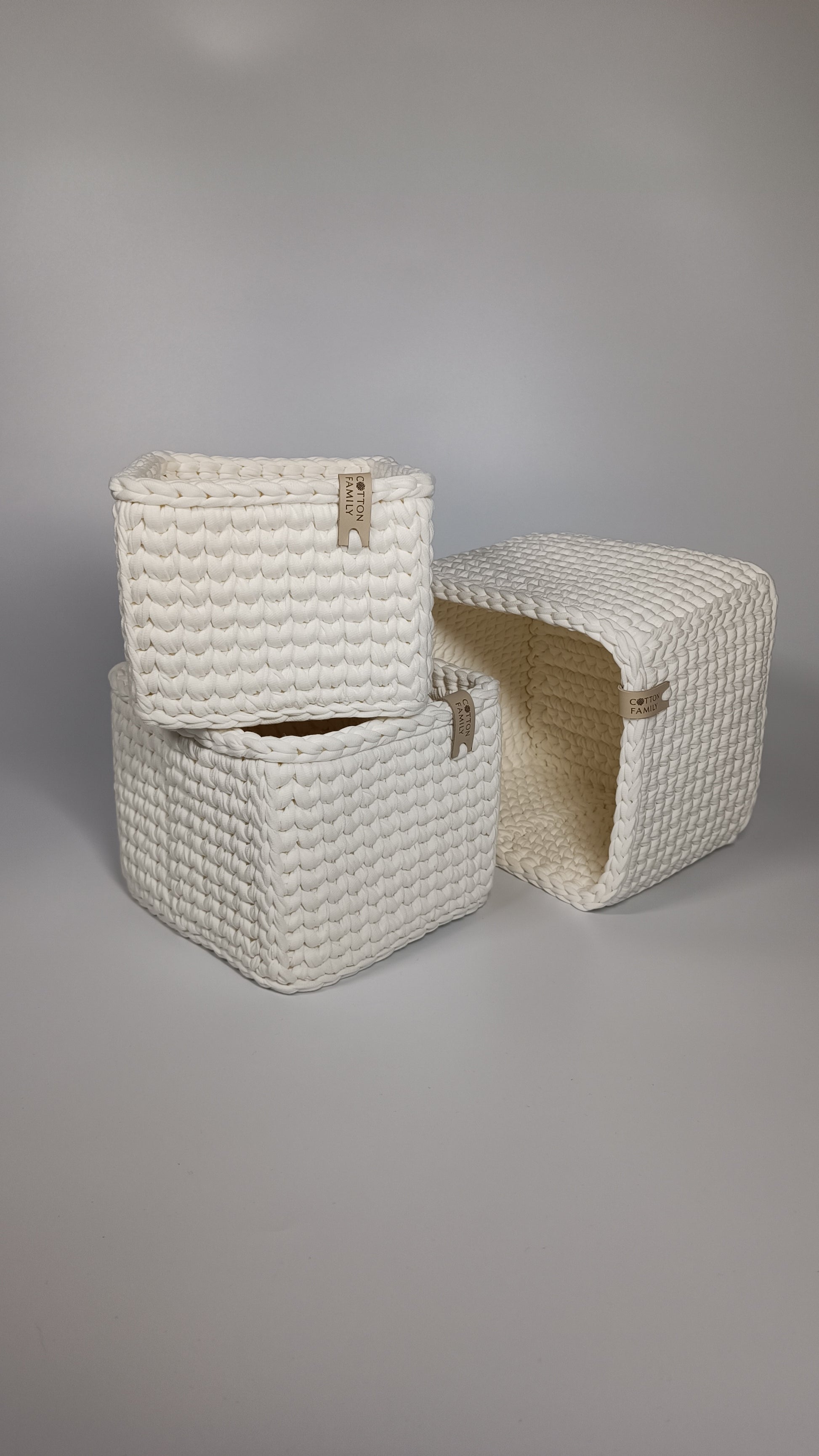 CUBE Set — Milk | Handmade Crochet Storage Baskets (Set of 3)