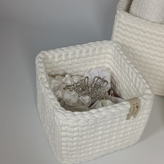 Their structured shape and knitted bottom make them ideal for bathroom essentials, cosmetics, accessories, or nursery items, adding both function and a warm handmade touch.The Milk shade brings soft brightness and blends beautifully with Scandinavian and minimal natural interiors.