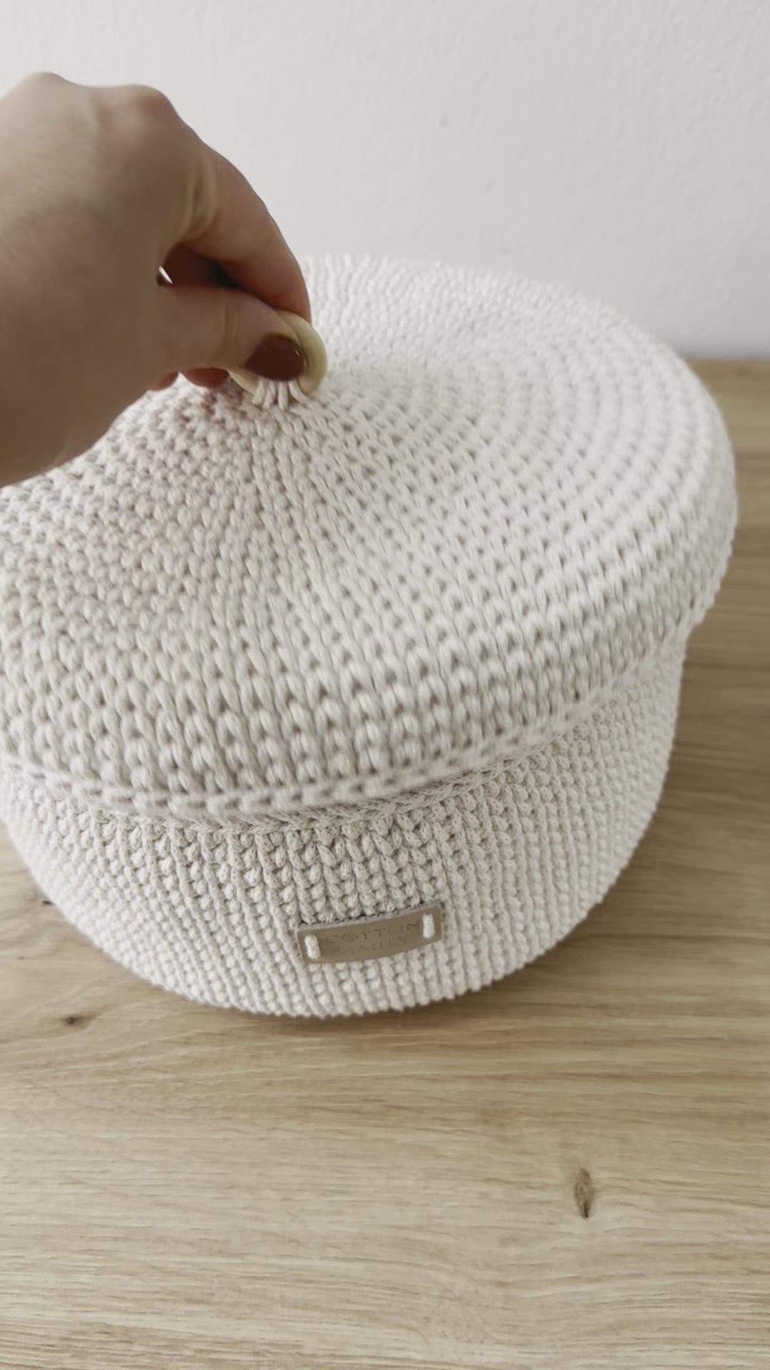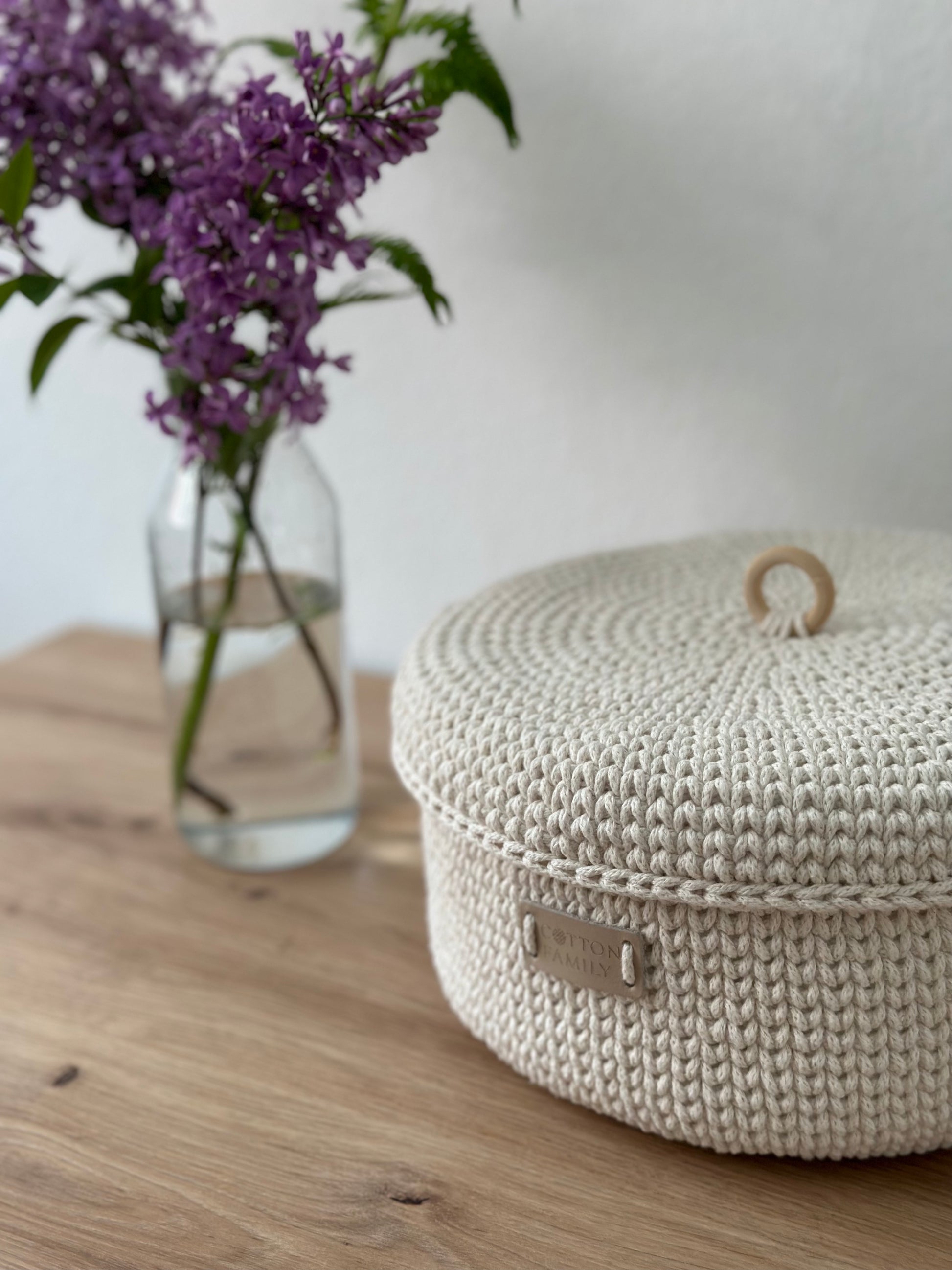 Our natural color handmade round cotton rope basket offers style and function. This basket is a convenient and organized storage solution for any room. With a lid that protects your belongings from dust and moisture, this basket is designed to keep your belongings safe.