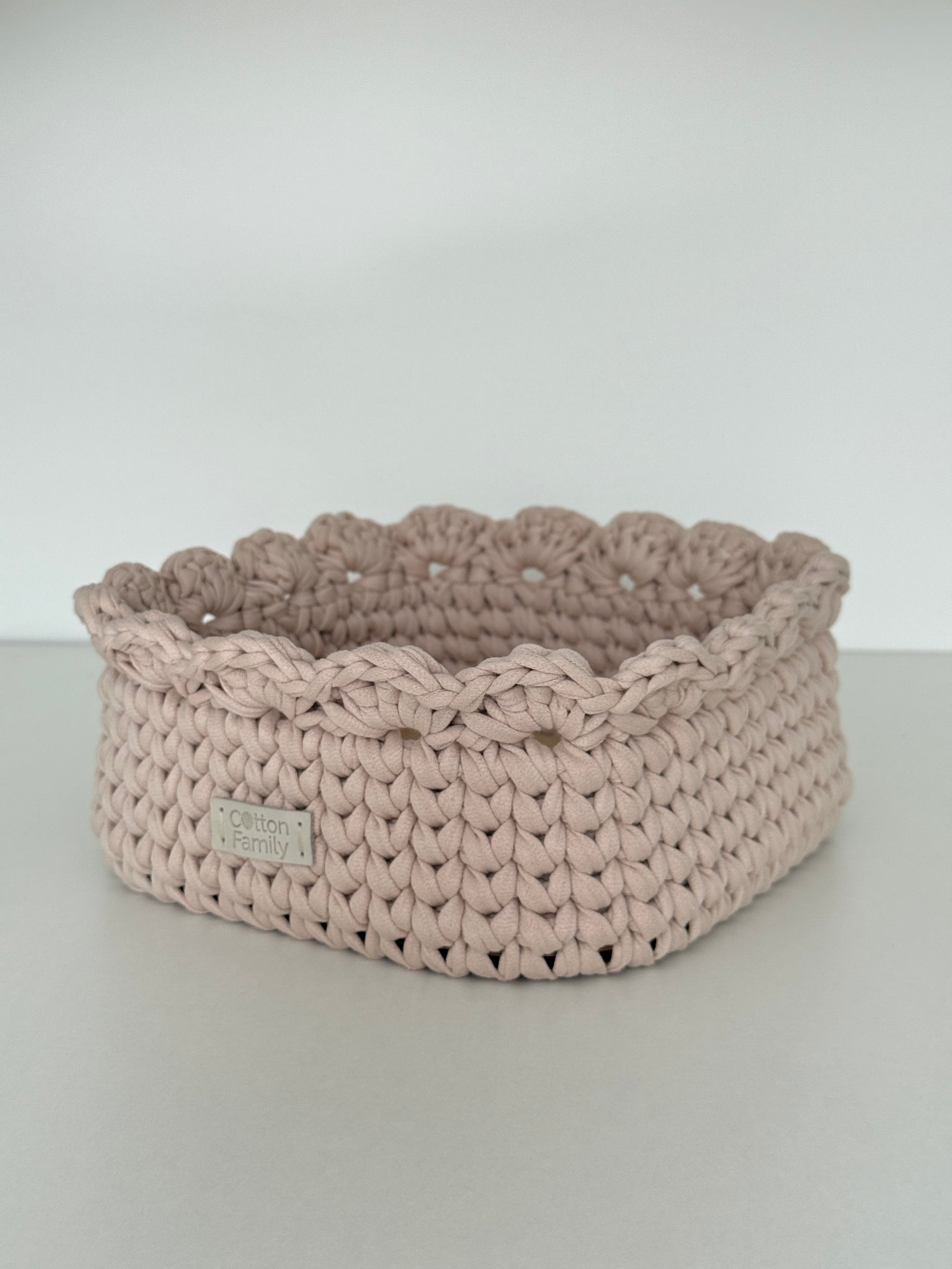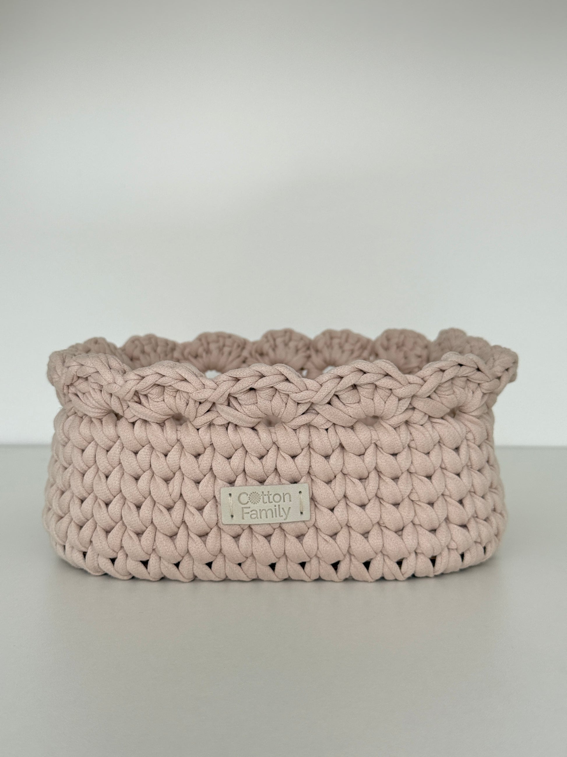 Petal Basket — Powder | Soft Pastel Crochet Storage by Cotton Family Design