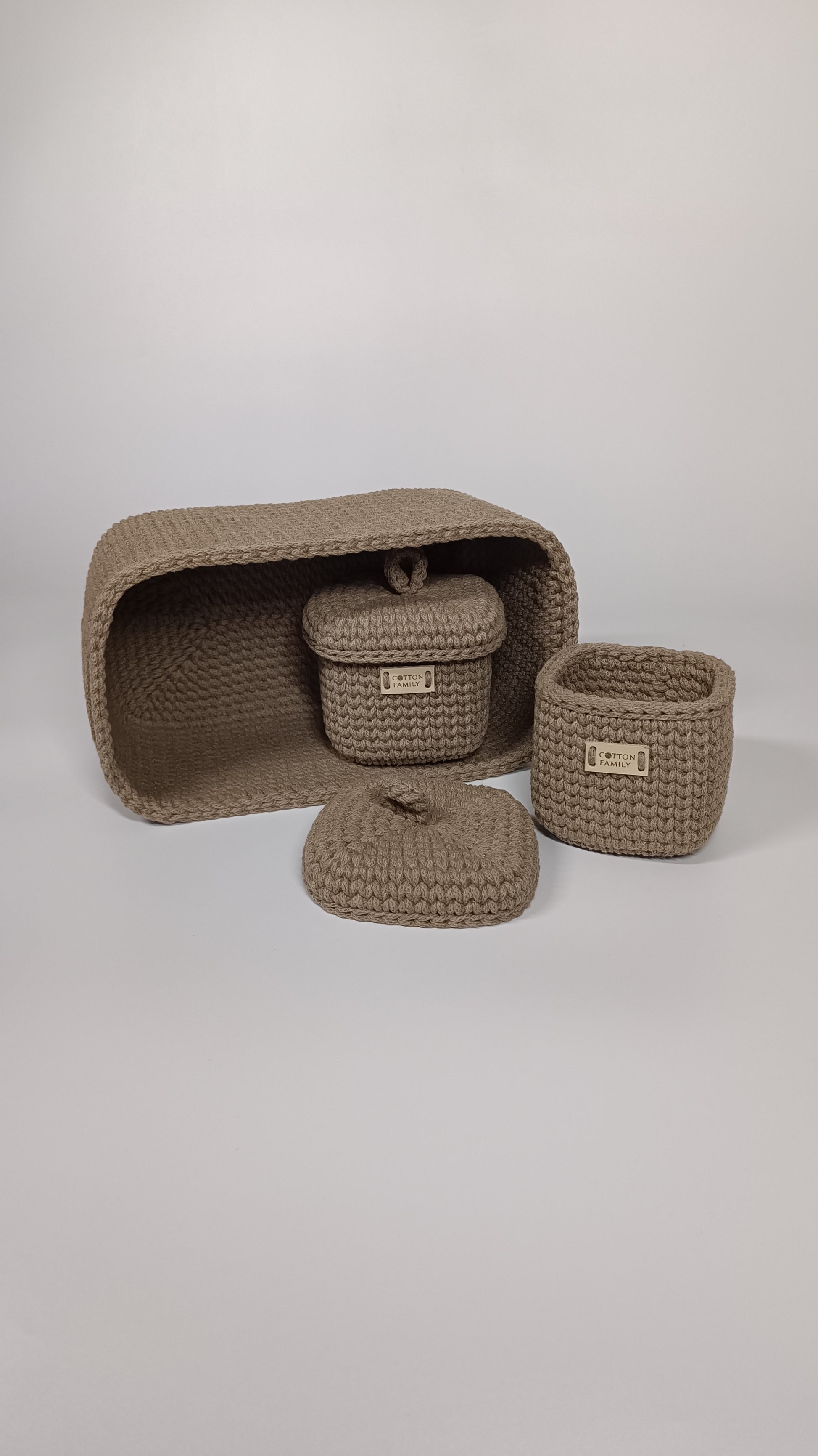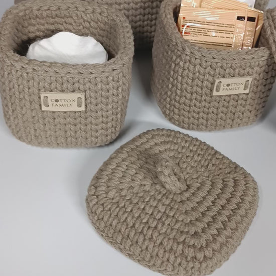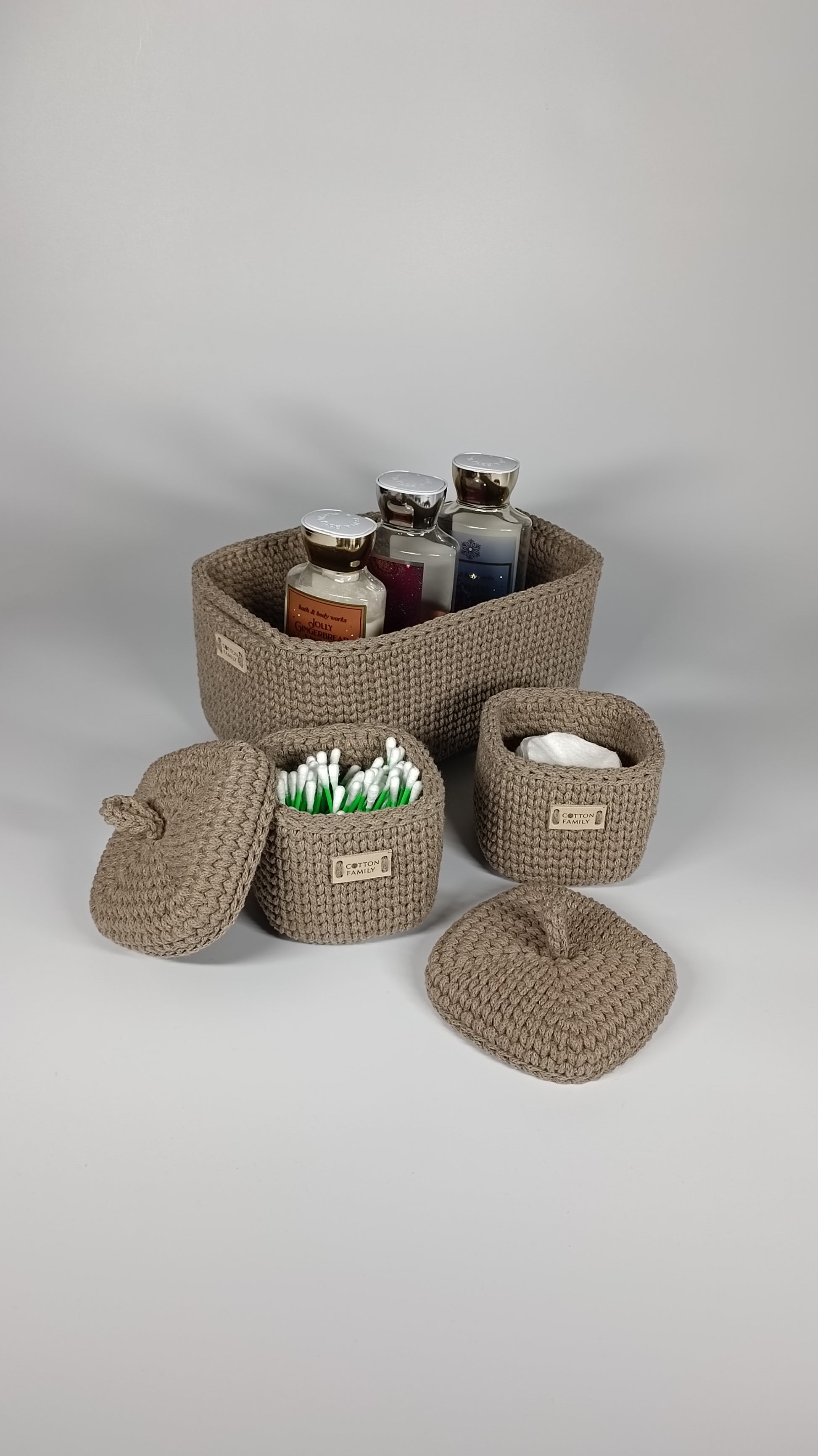 Ideal for storing skincare, grooming items, accessories, small towels, or everyday essentials. Each piece is meticulously crocheted, adding a refined handmade character to your interior.