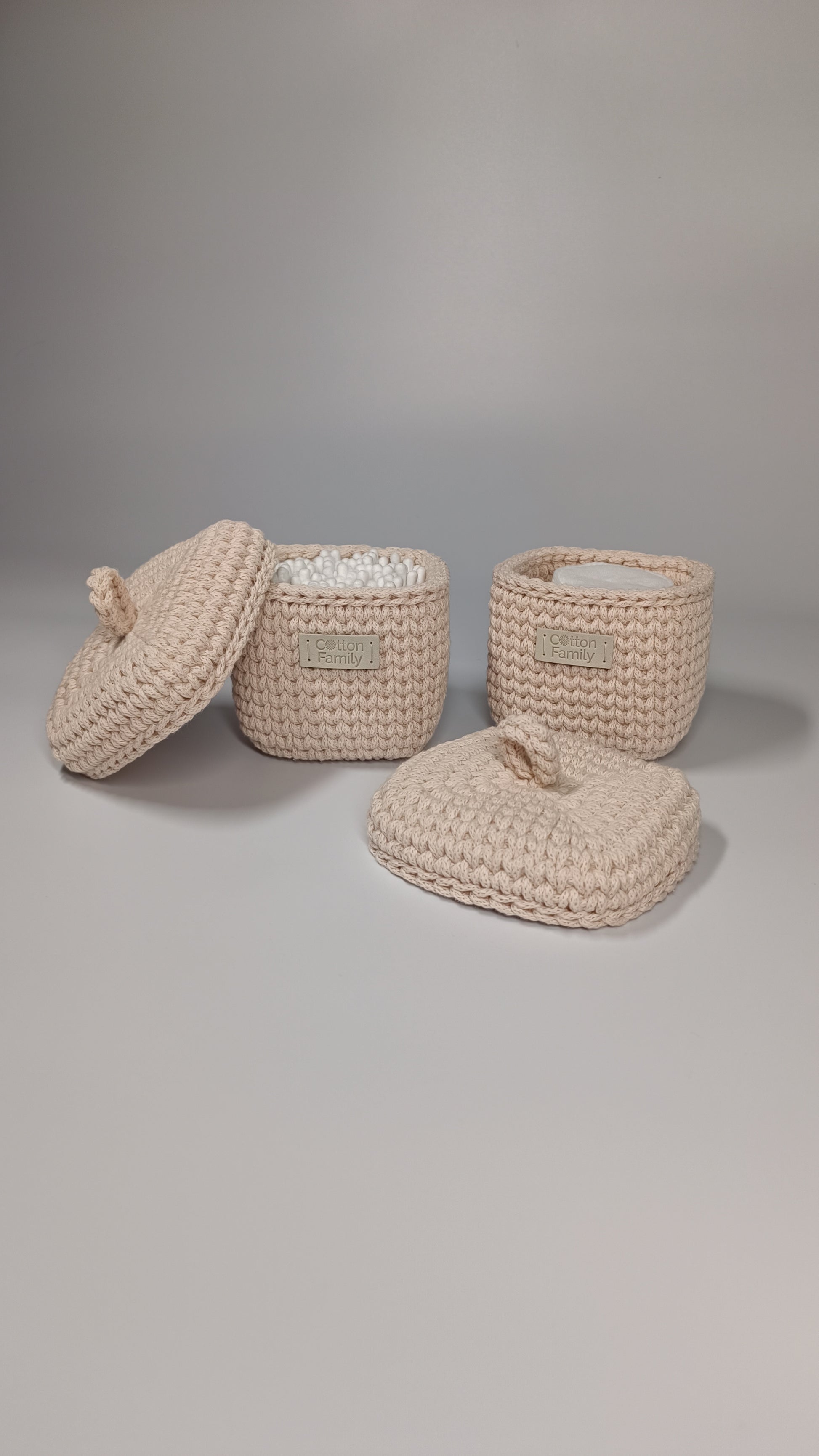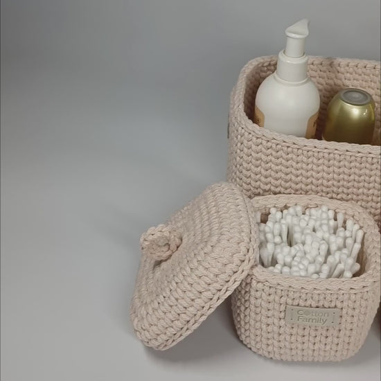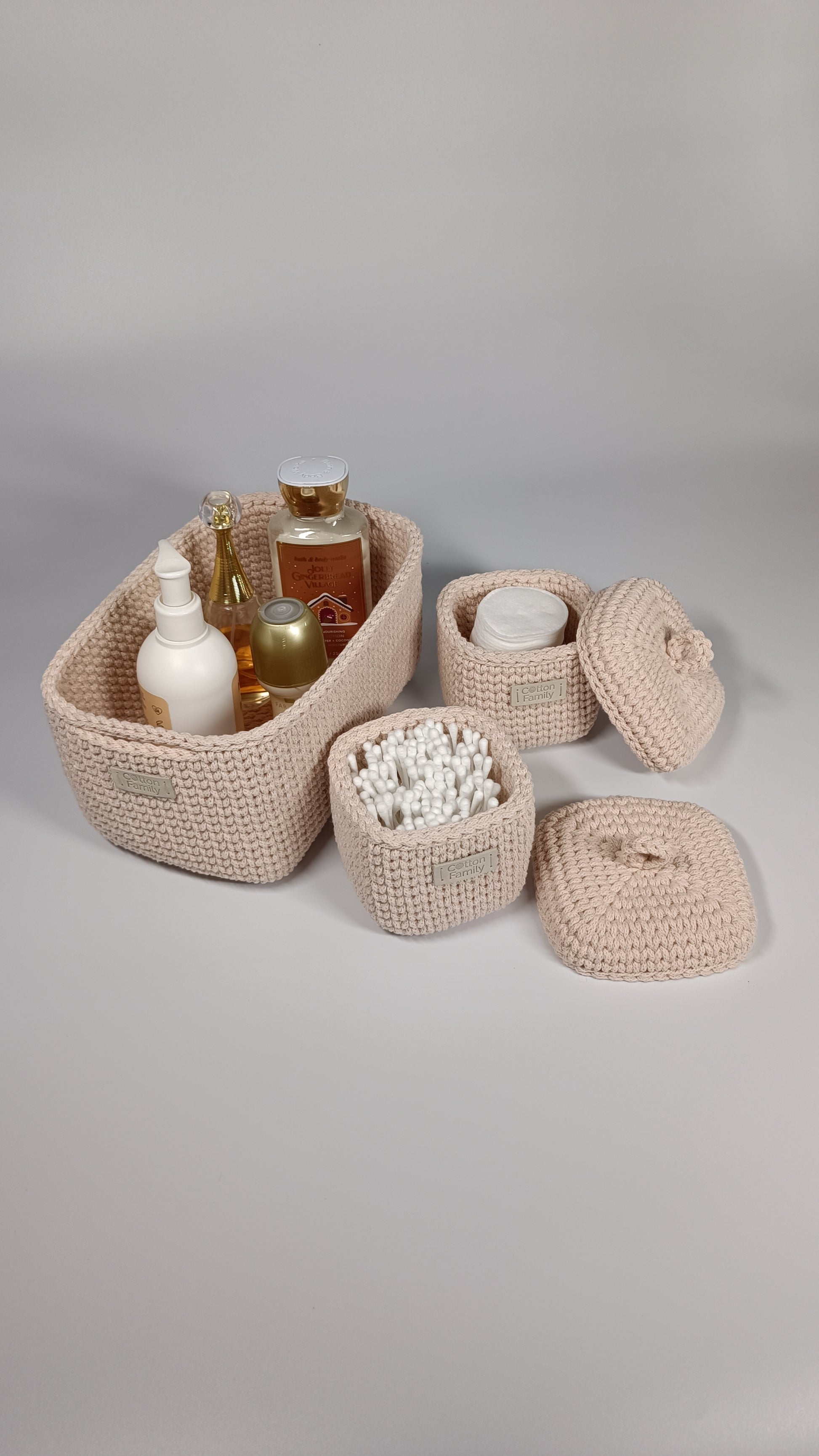 Perfect for skincare, cosmetics, cotton pads, hair accessories, and daily essentials. Each piece is crocheted by hand, giving your home a cozy, curated aesthetic.