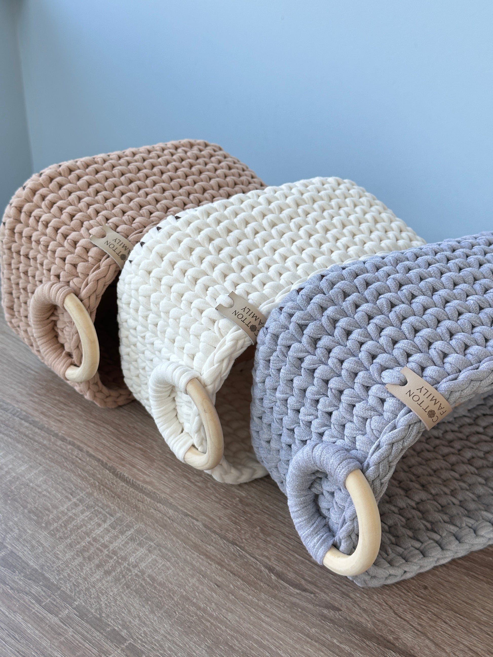 Available in 20 shades, these baskets harmoniously fit into any design, becoming a wonderful addition to your bedroom, bathroom, or living room.