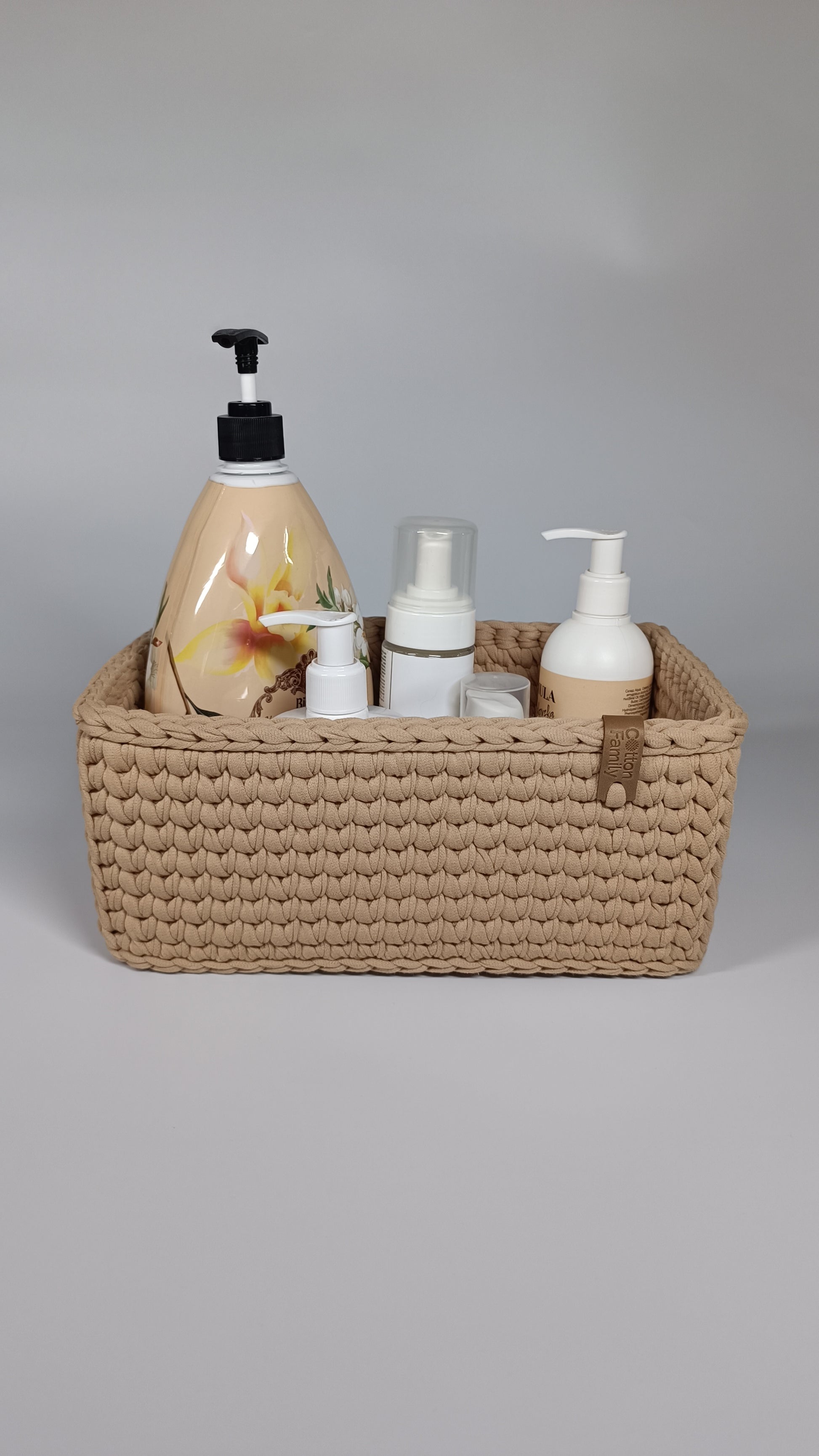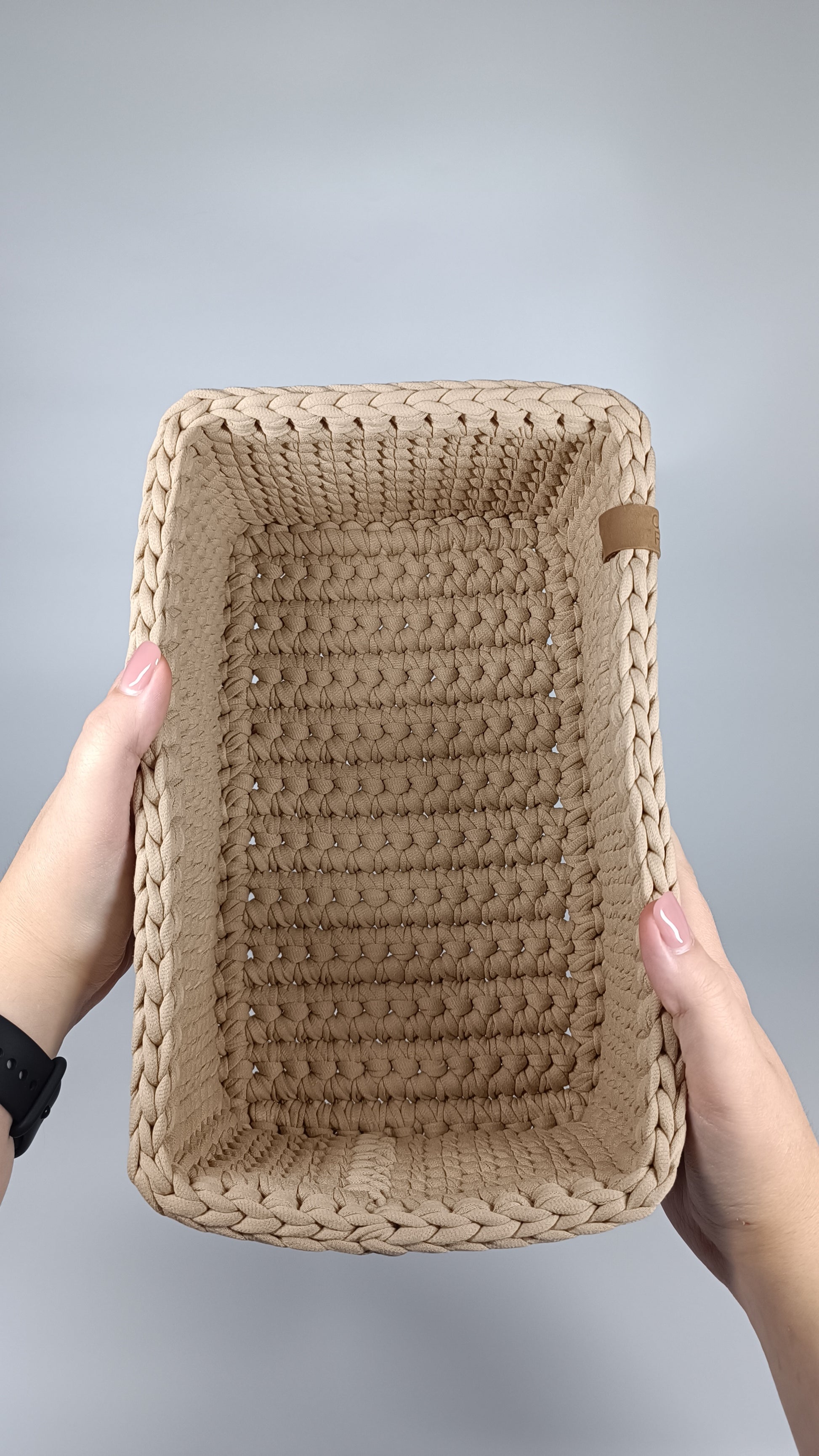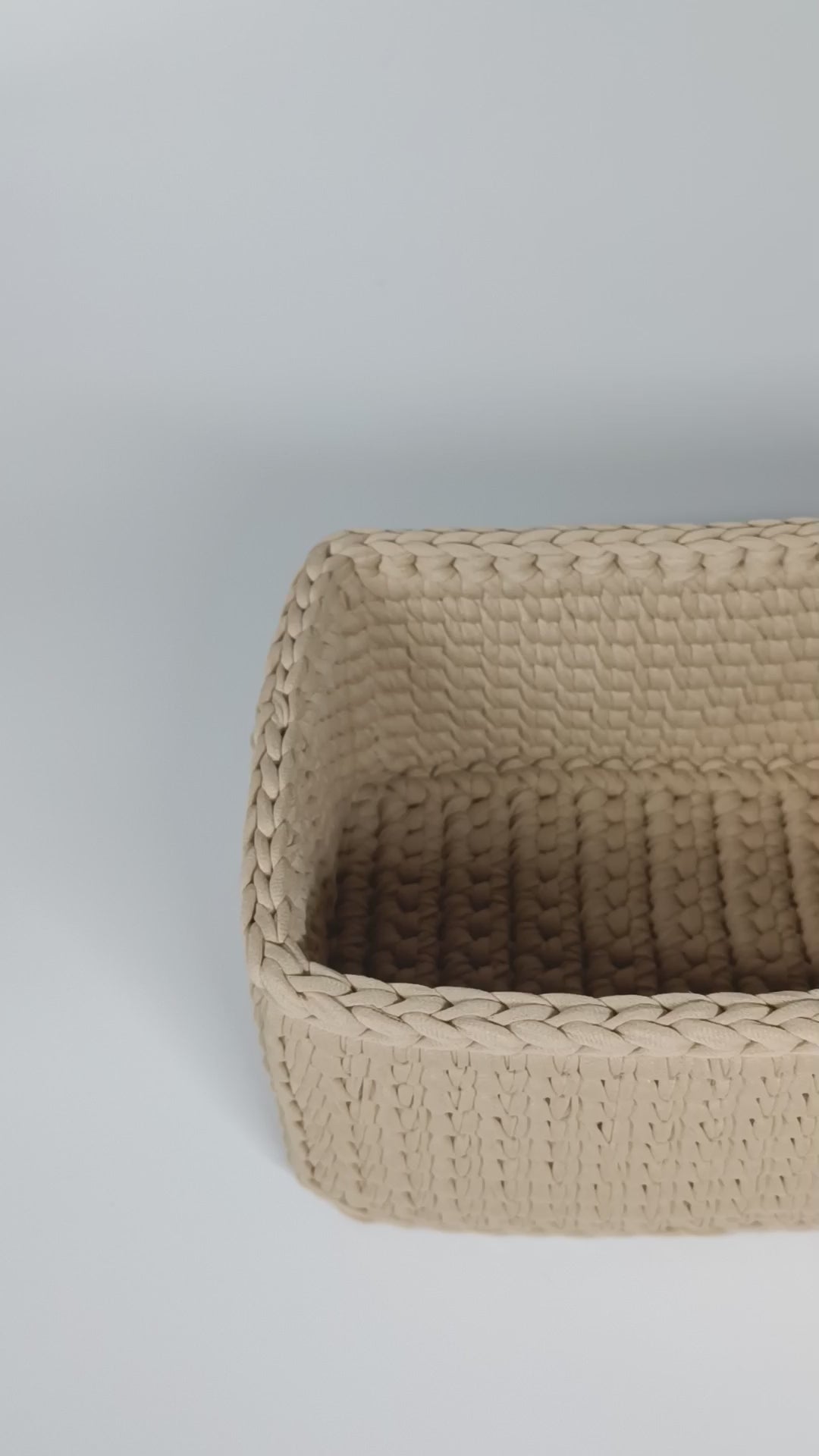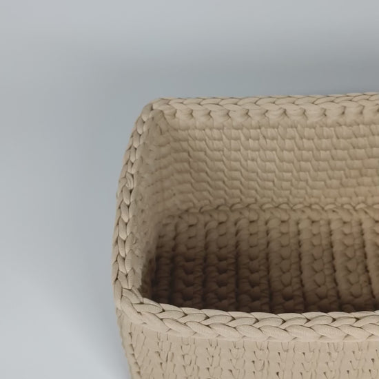 RECTO Basket — Warm Sand | Handmade Crochet Organizer with Knitted Bottom