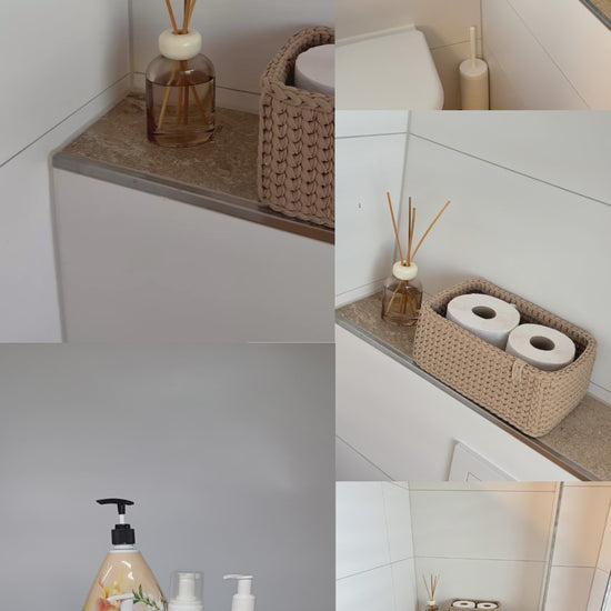 It works beautifully for bathroom essentials, kitchen organization, or creating softly curated shelves.