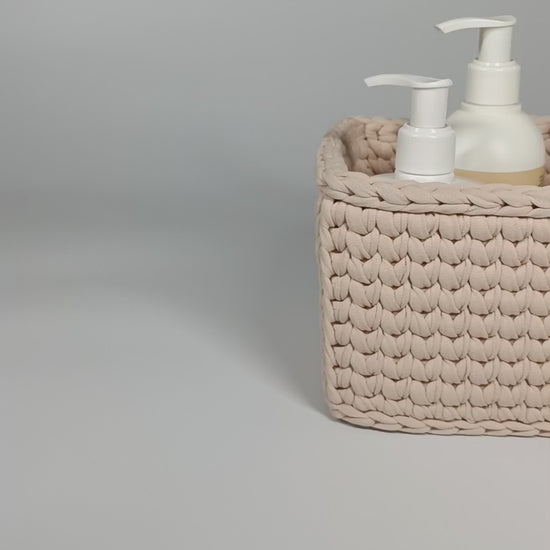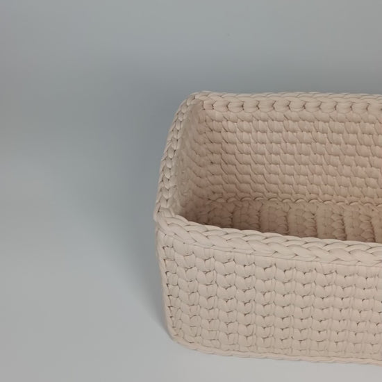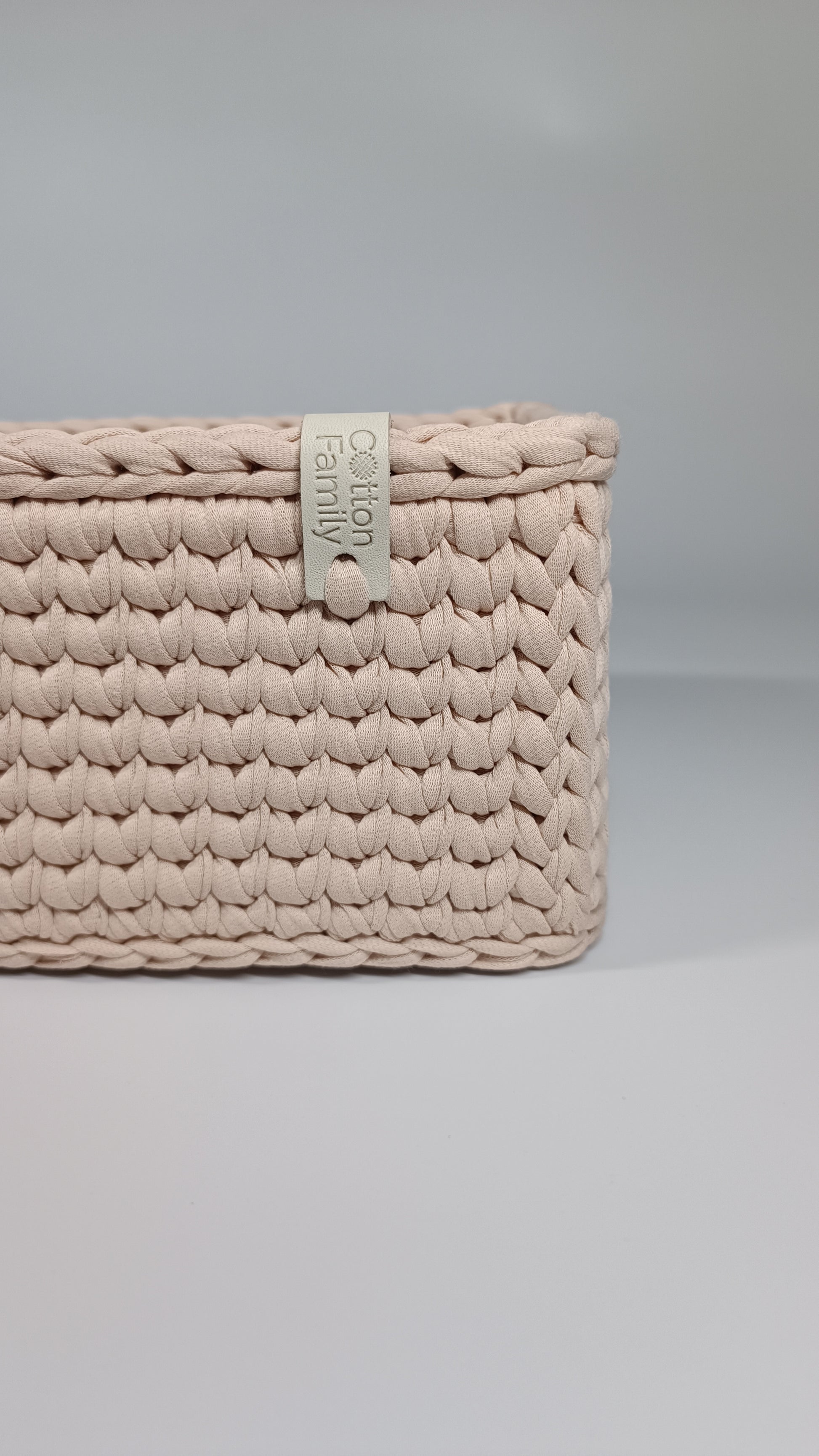 RECTO Basket — Powder | Handmade Crochet Organizer with Knitted Bottom