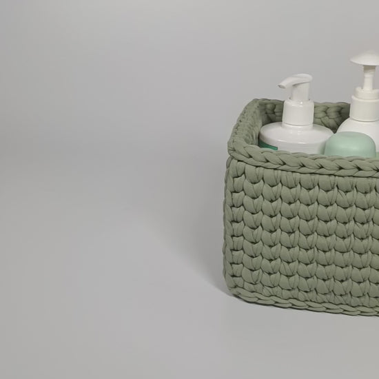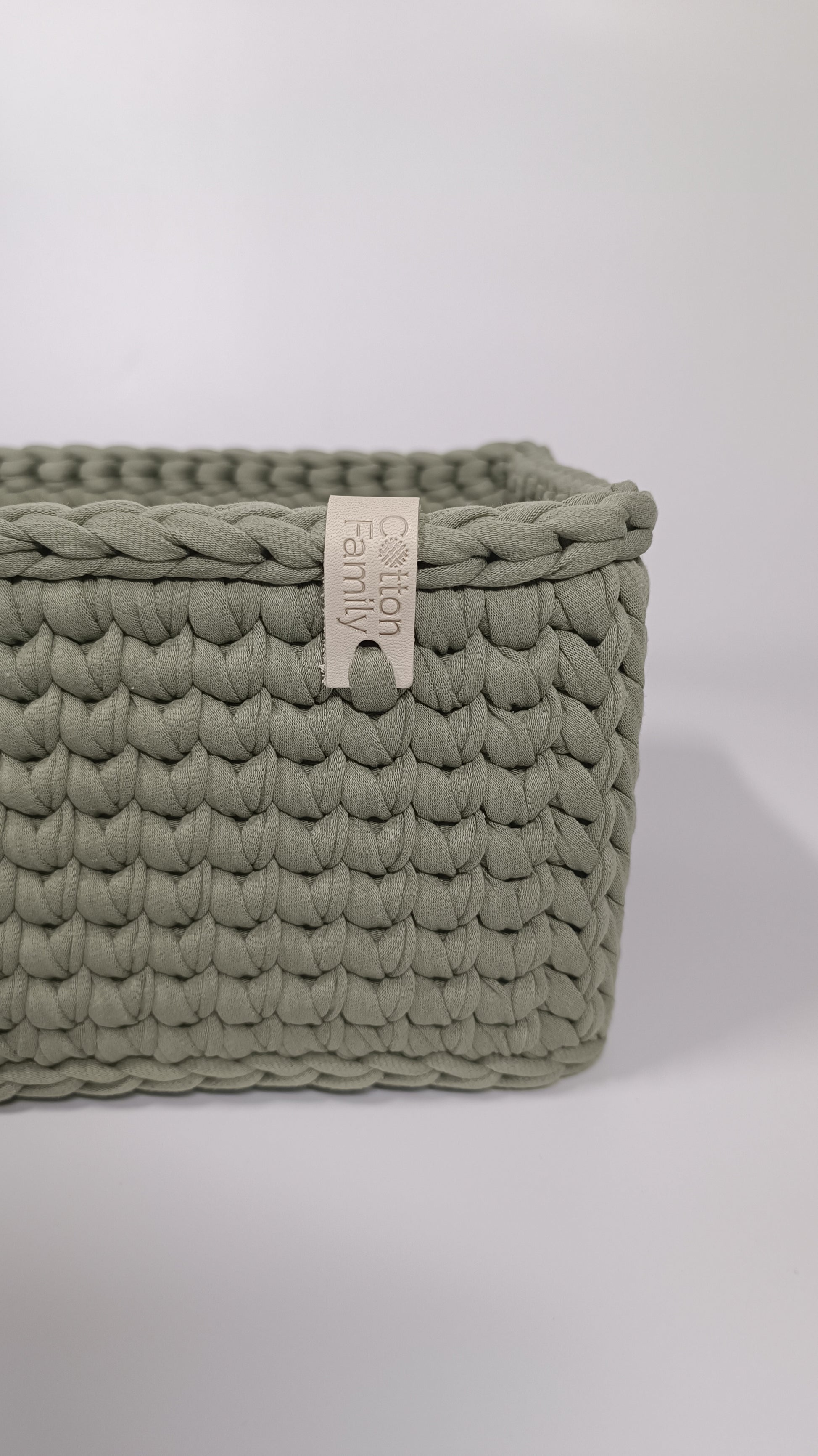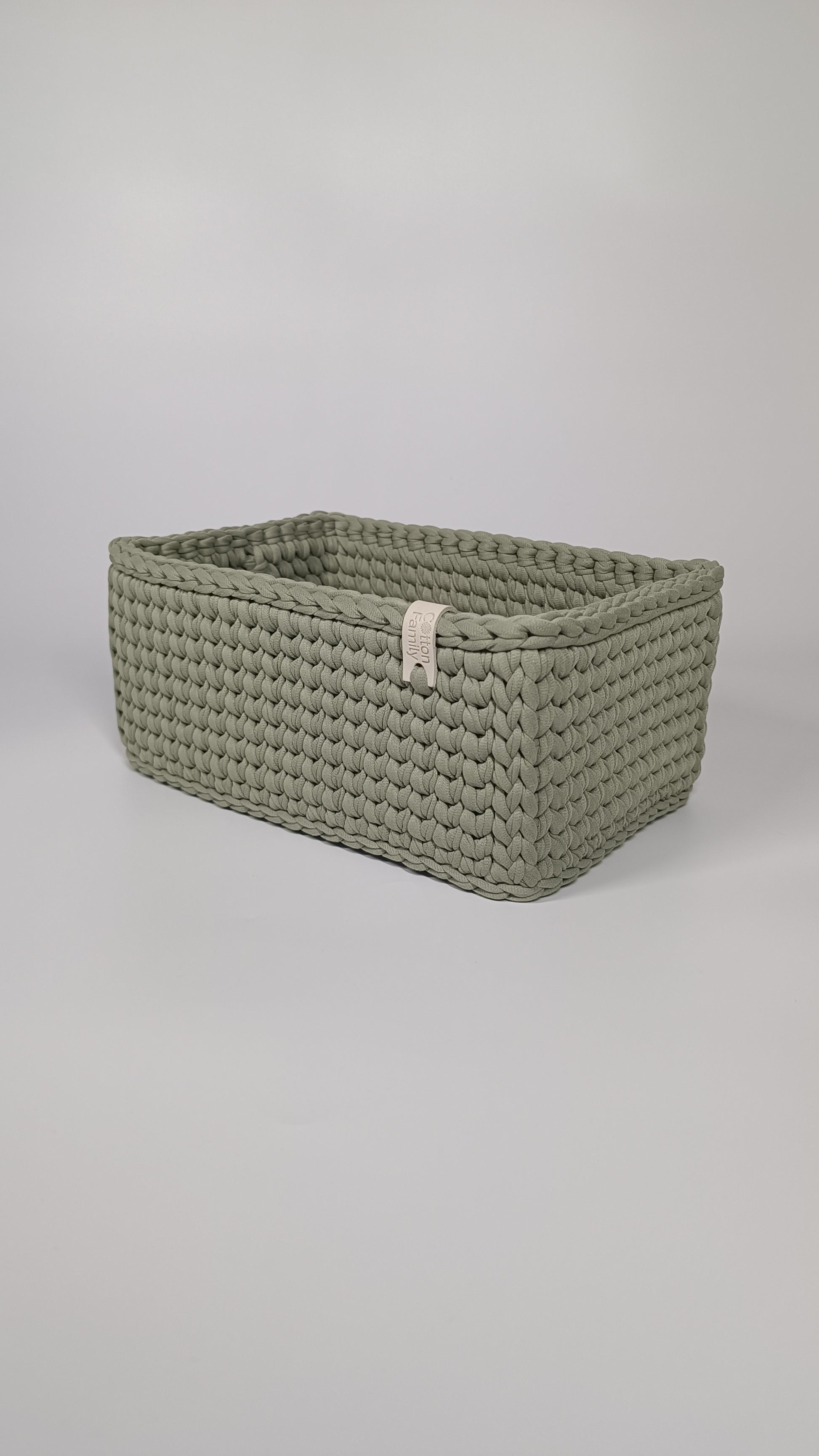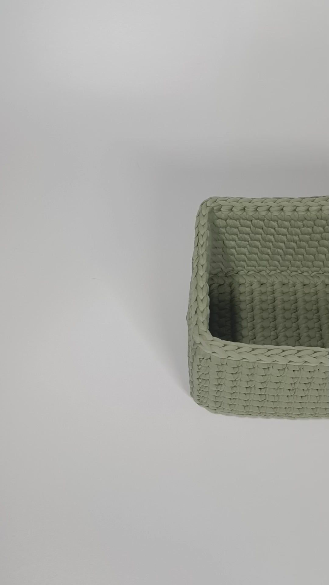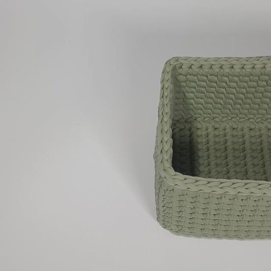 RECTO Basket — Sage Mist | Handmade Crochet Organizer with Knitted Bottom