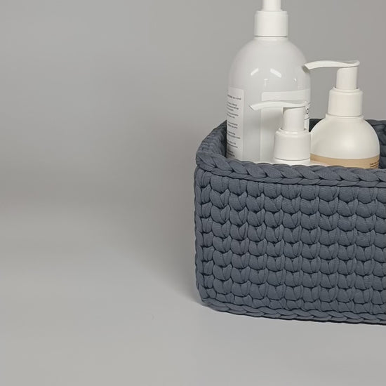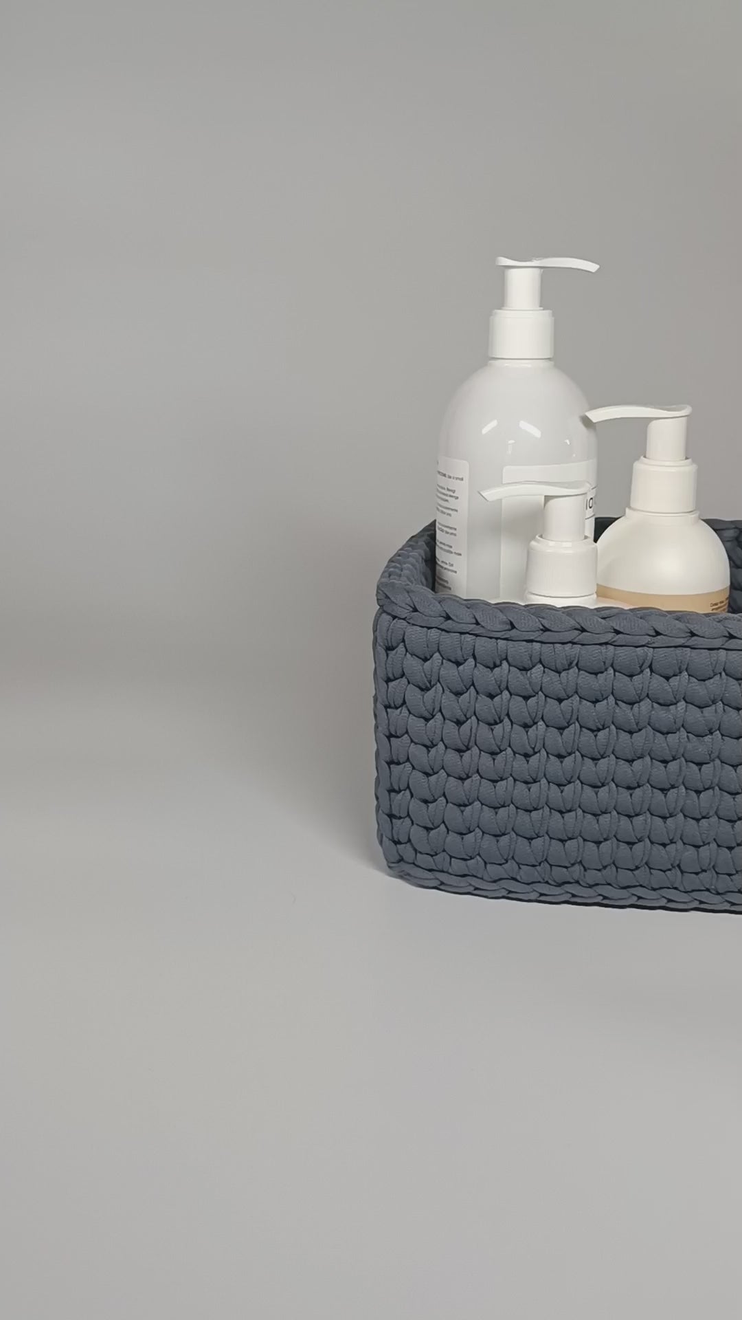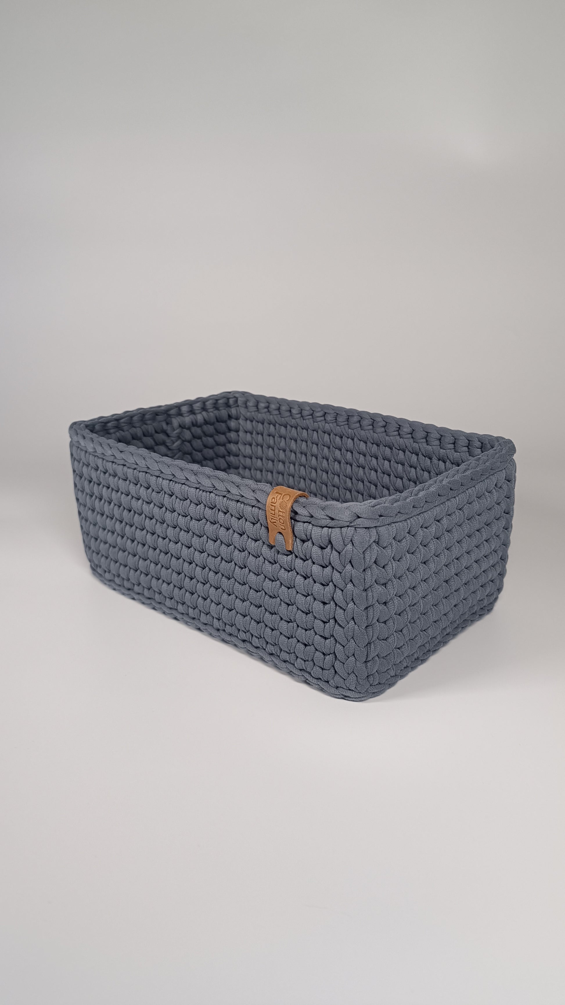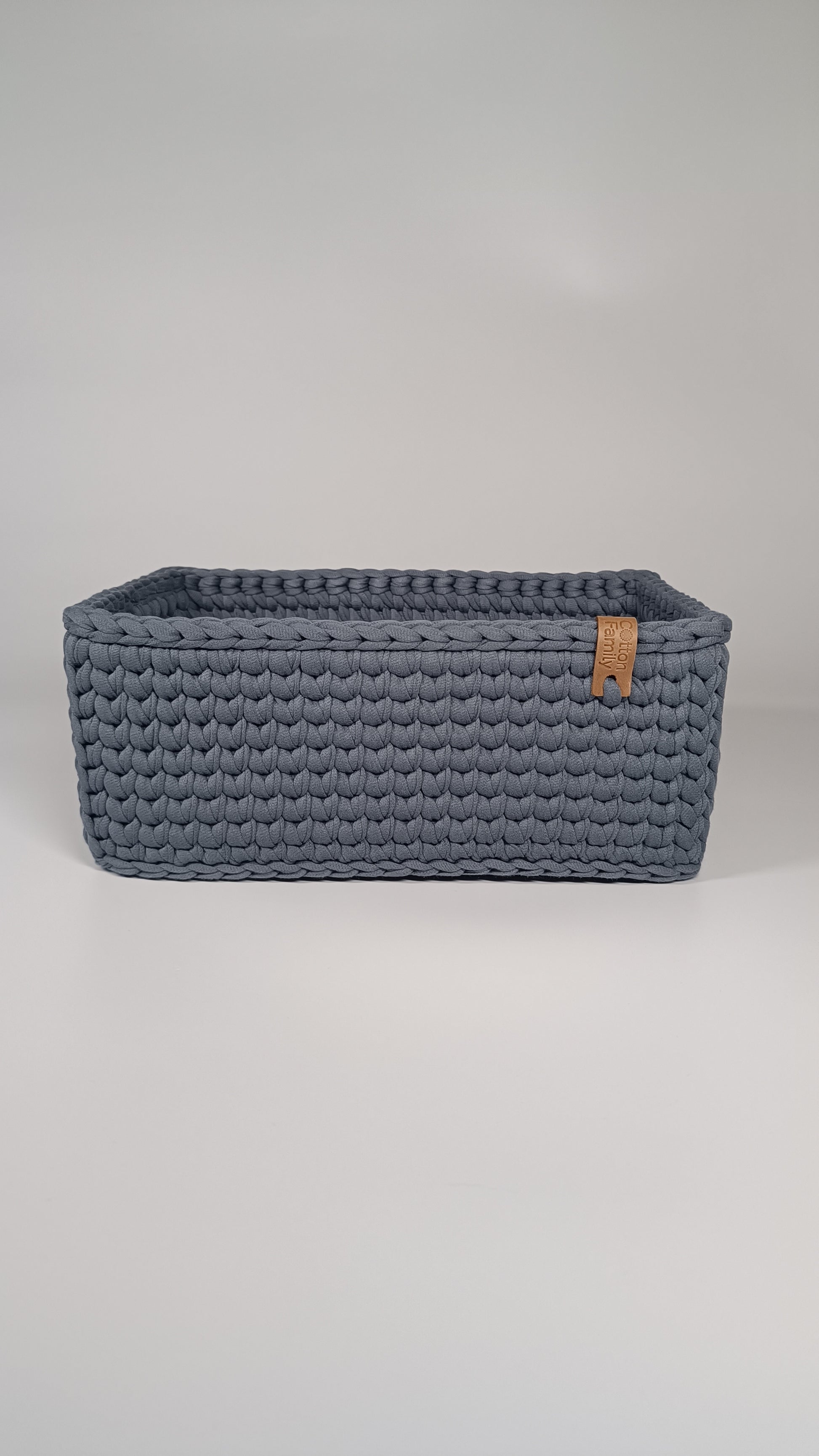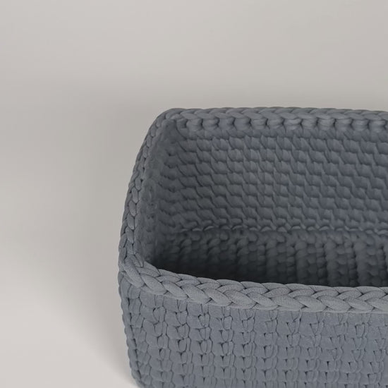 RECTO Basket — Storm | Handmade Crochet Organizer with Knitted Bottom