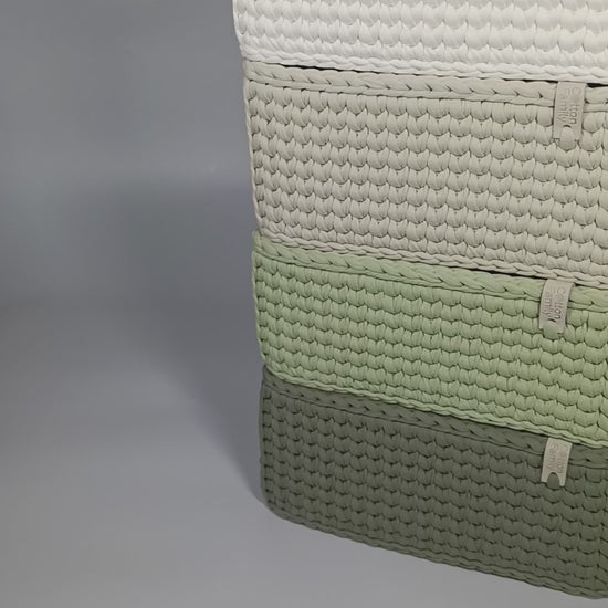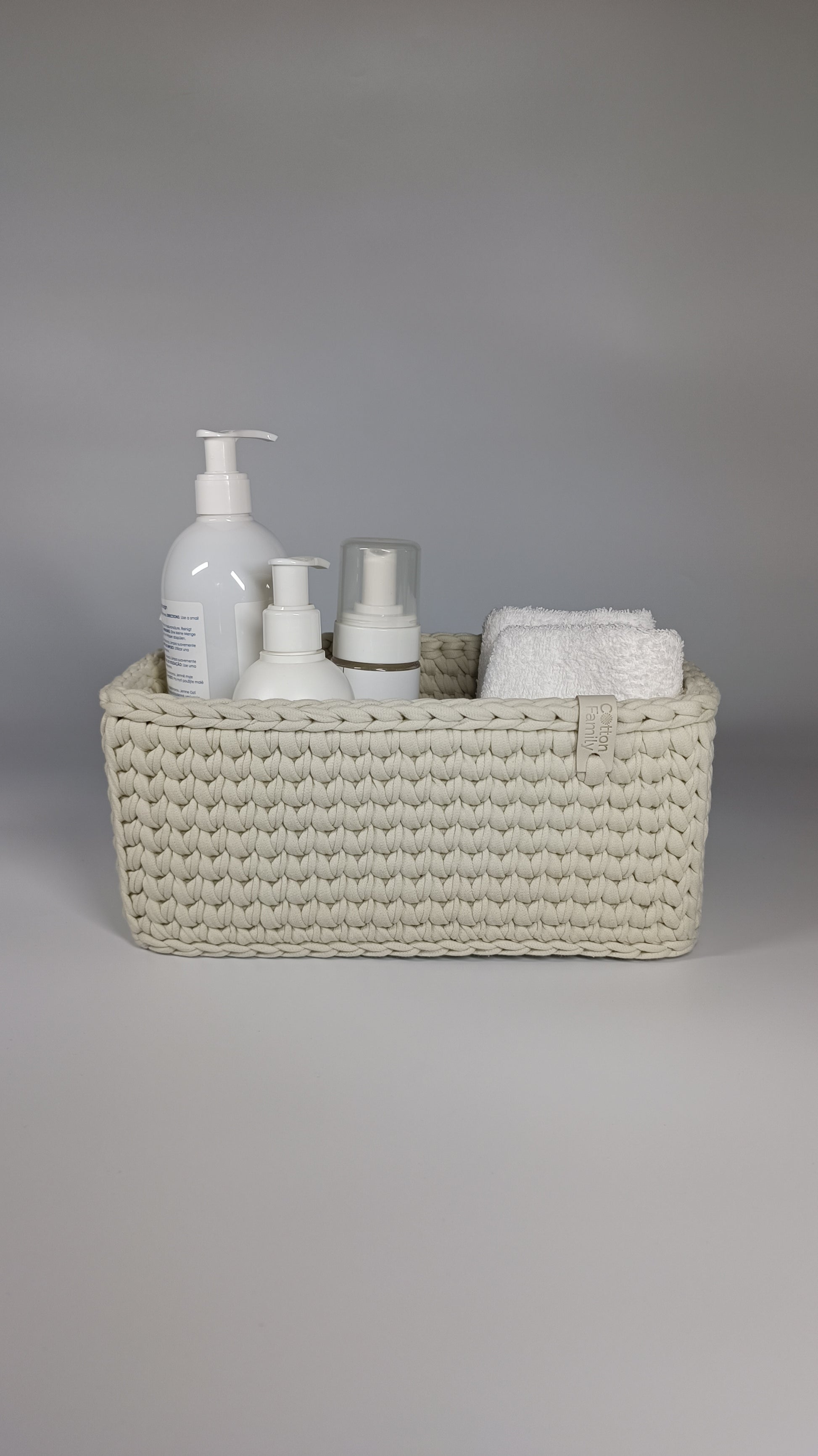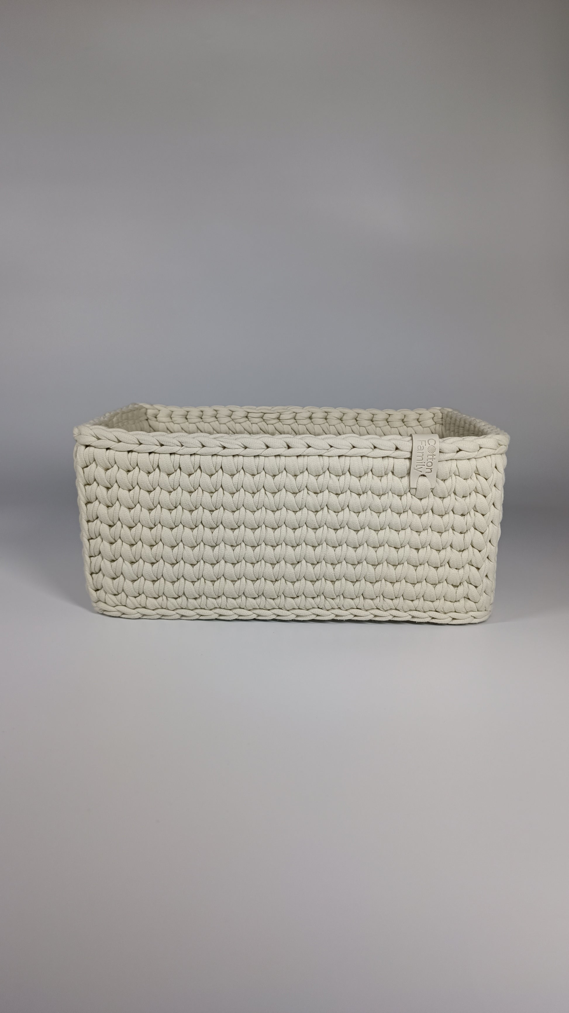 The “RECTO” rectangular crochet basket in Ivory is handmade from high-quality cotton knitted yarn with a fully knitted bottom.