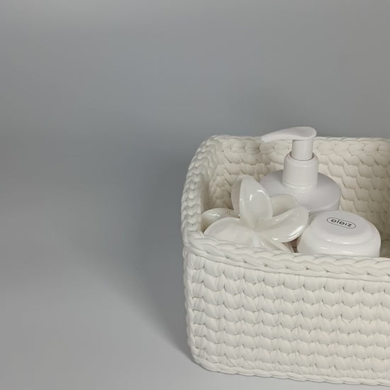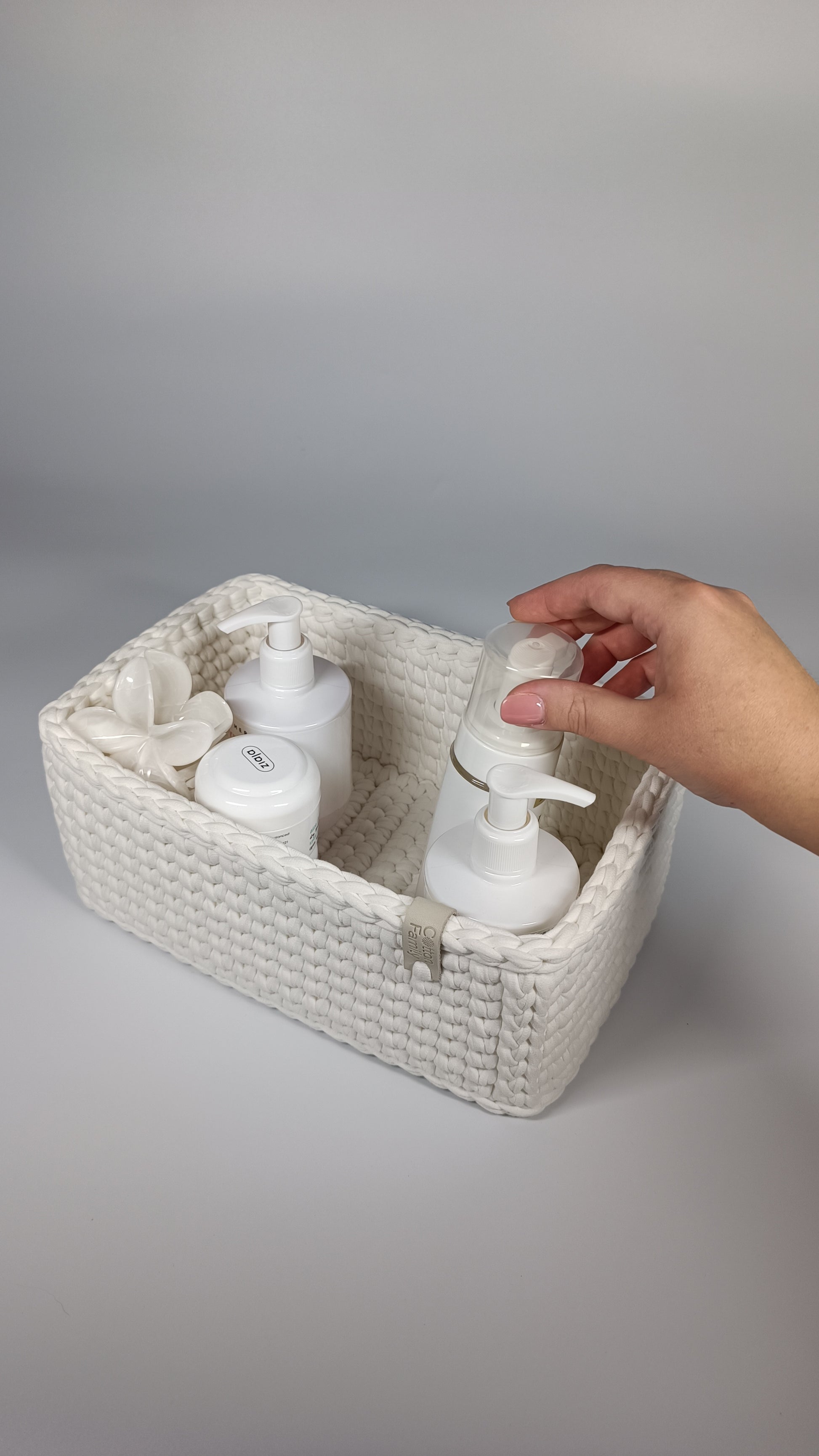 RECTO Basket — Milk | Handmade Crochet Organizer with Knitted Bottom