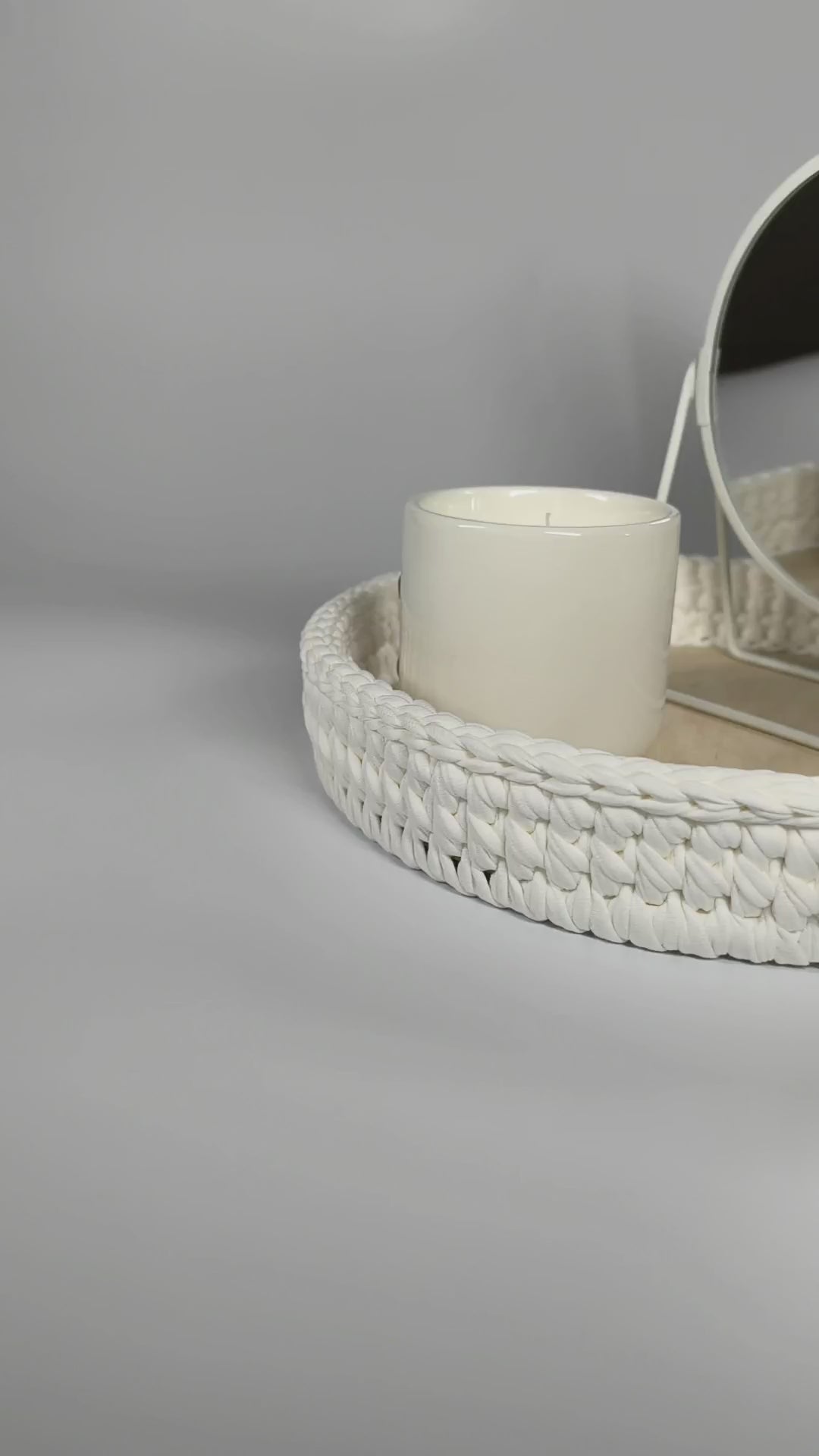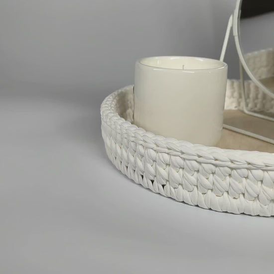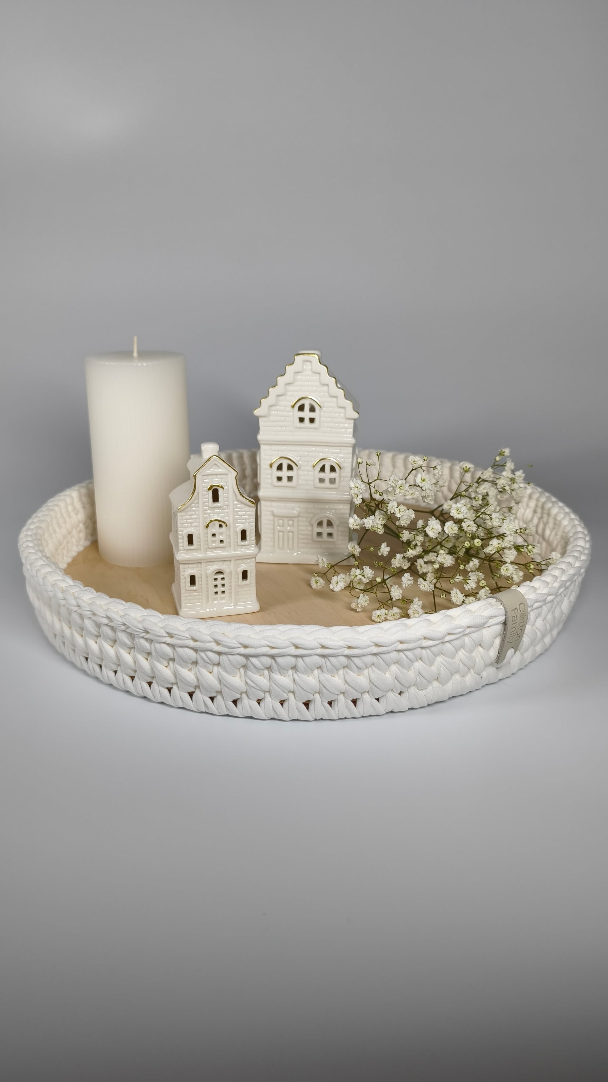 SALVA Tray — Milk | Handmade Round Crochet Tray with Wooden Base