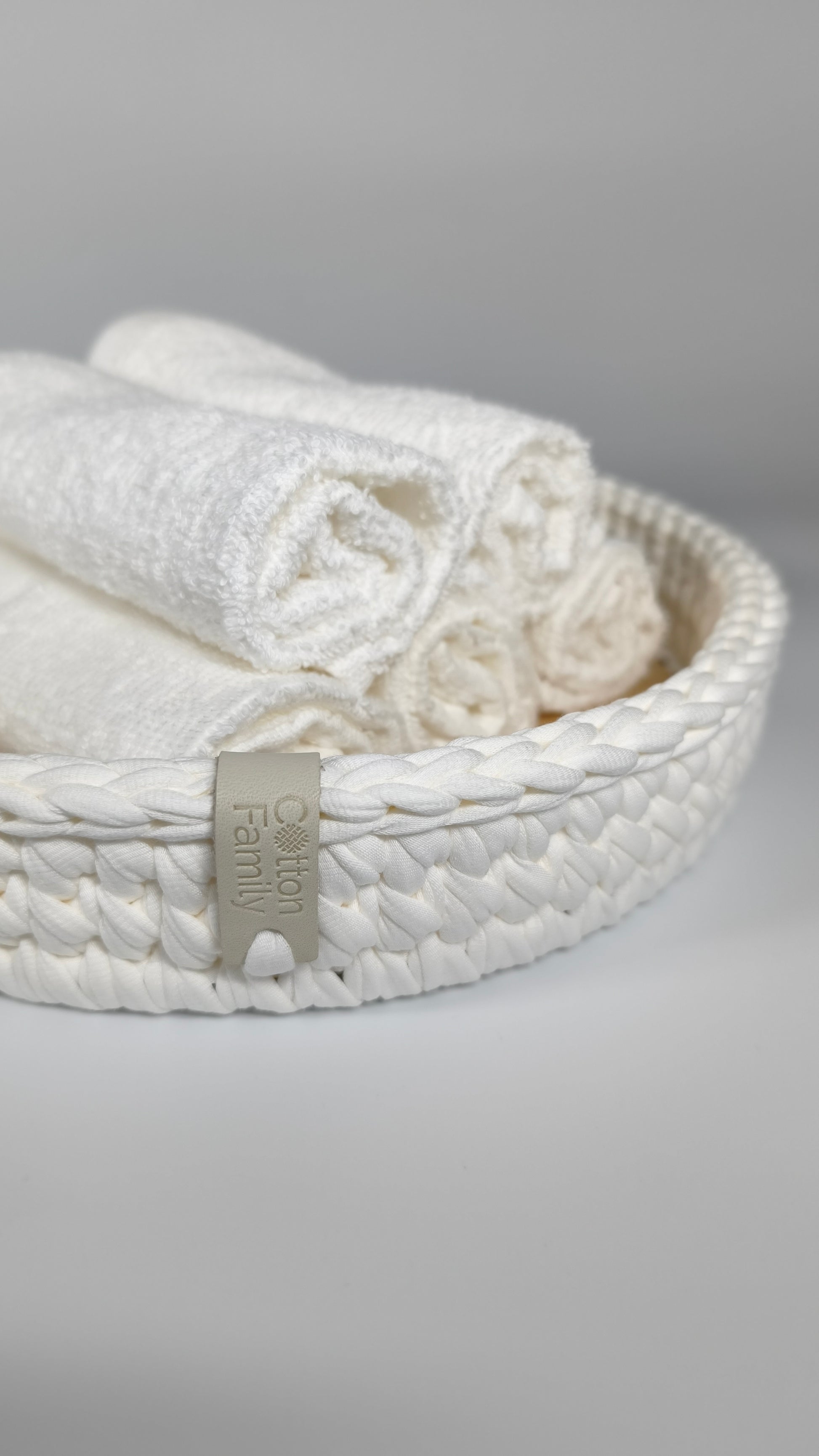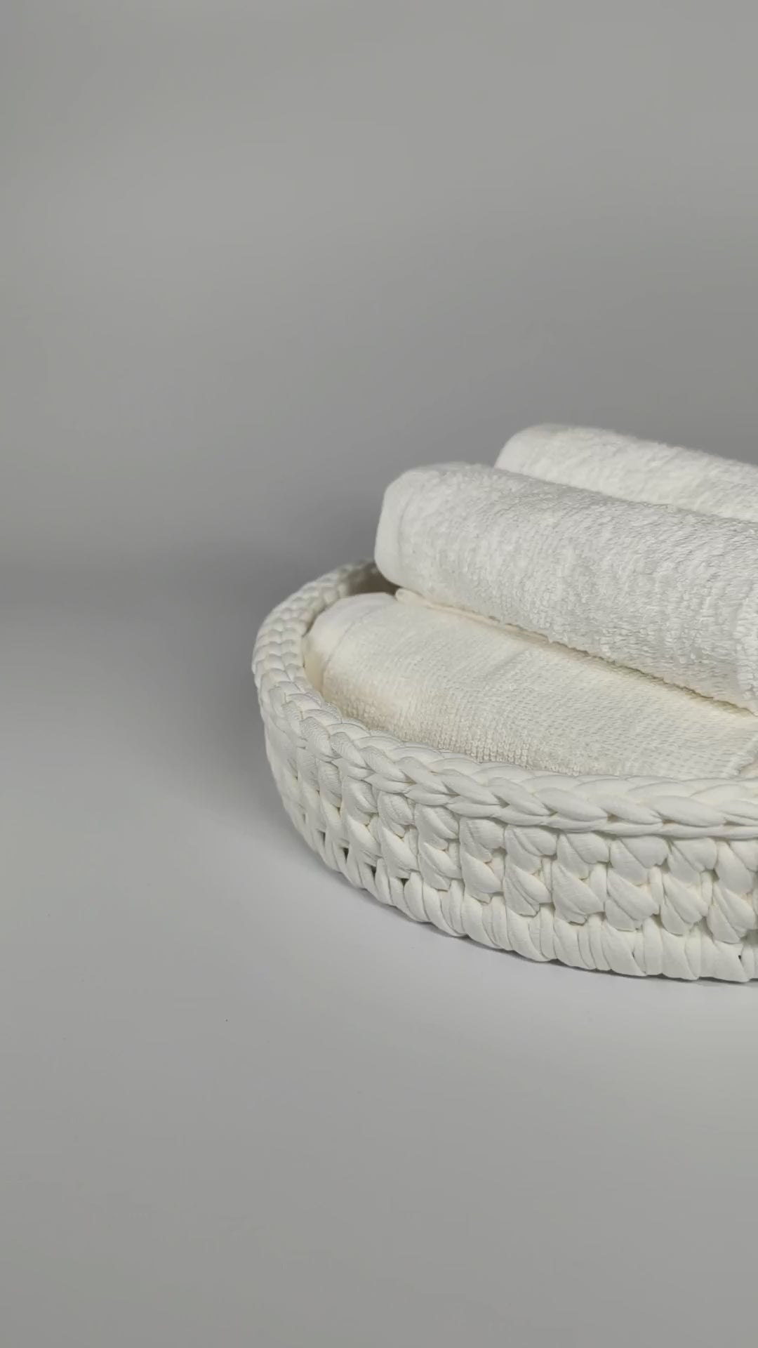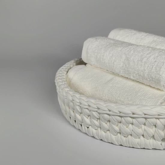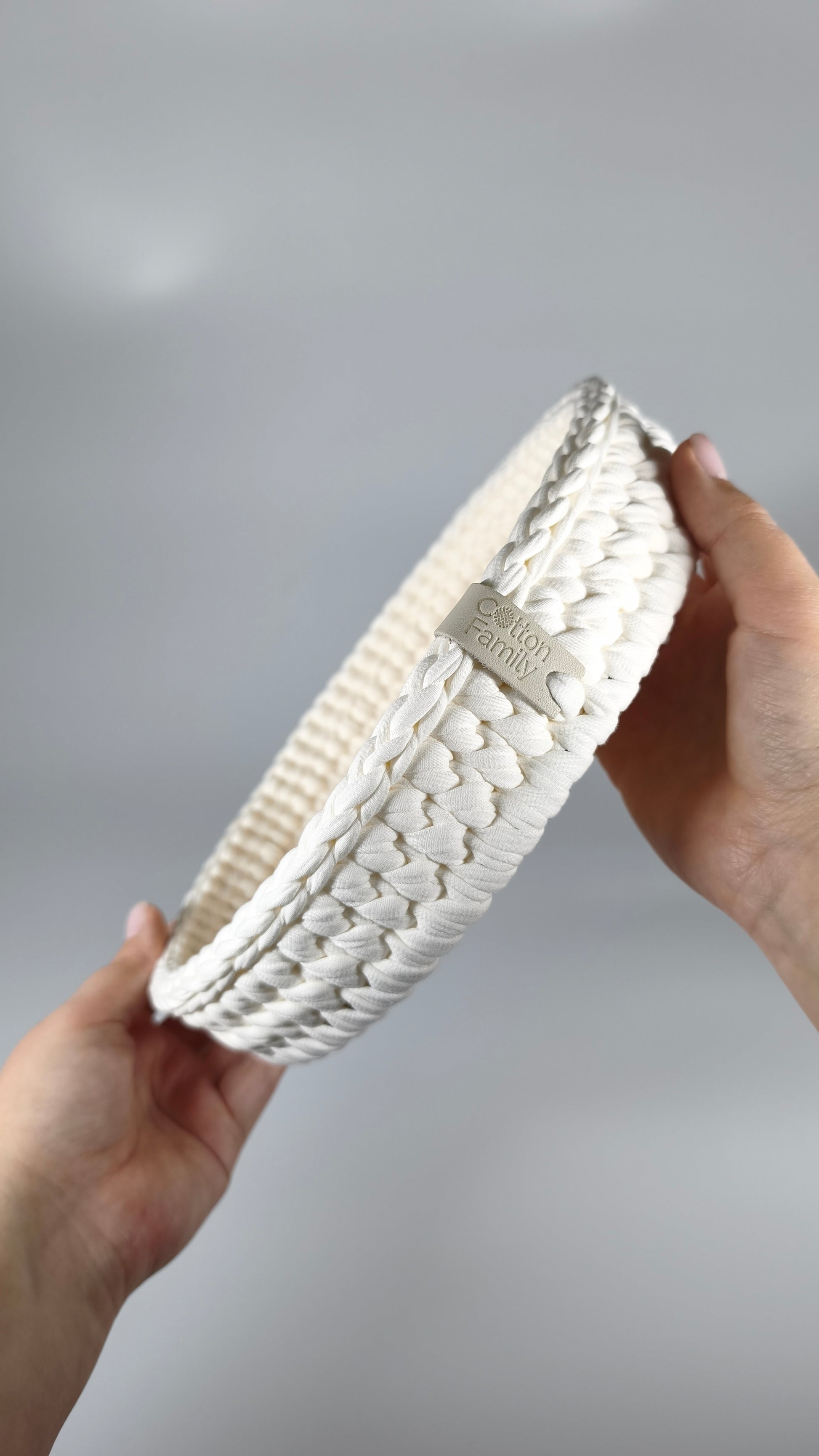SALVA Tray — Milk | Handmade Round Crochet Tray with Wooden Base