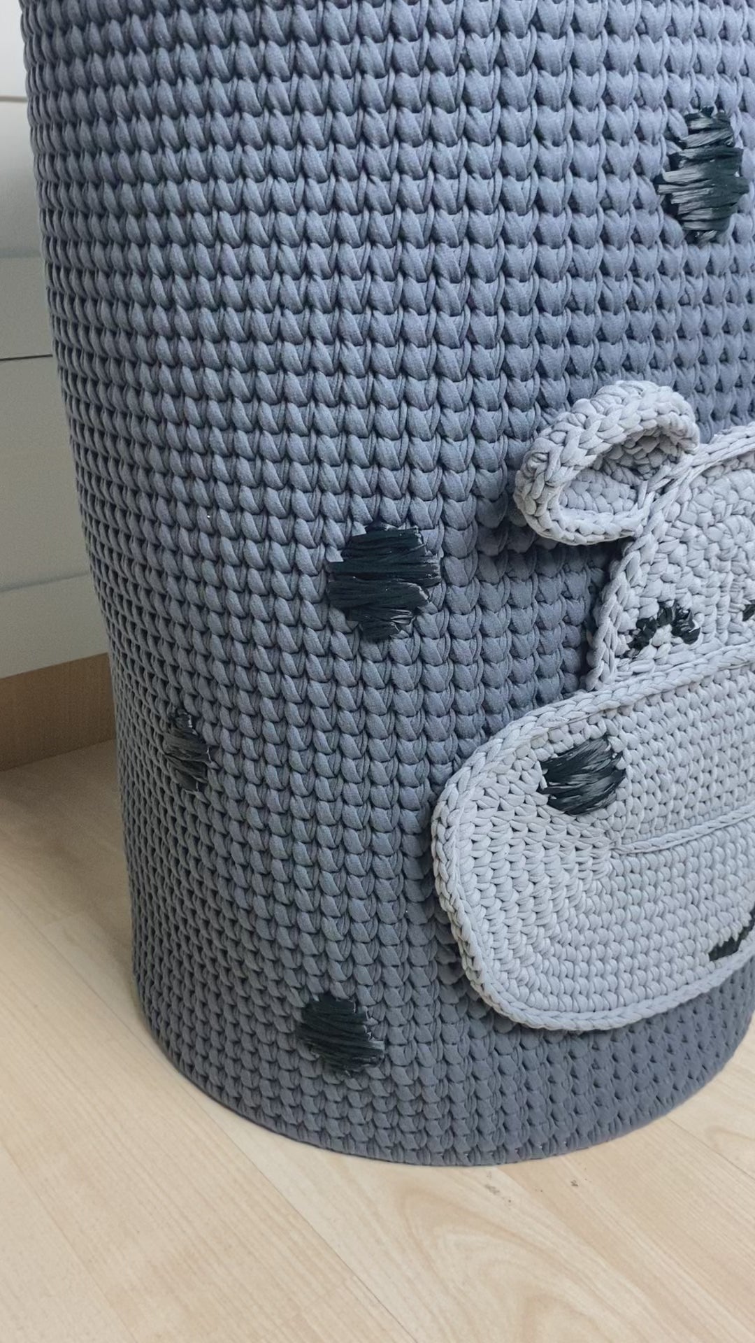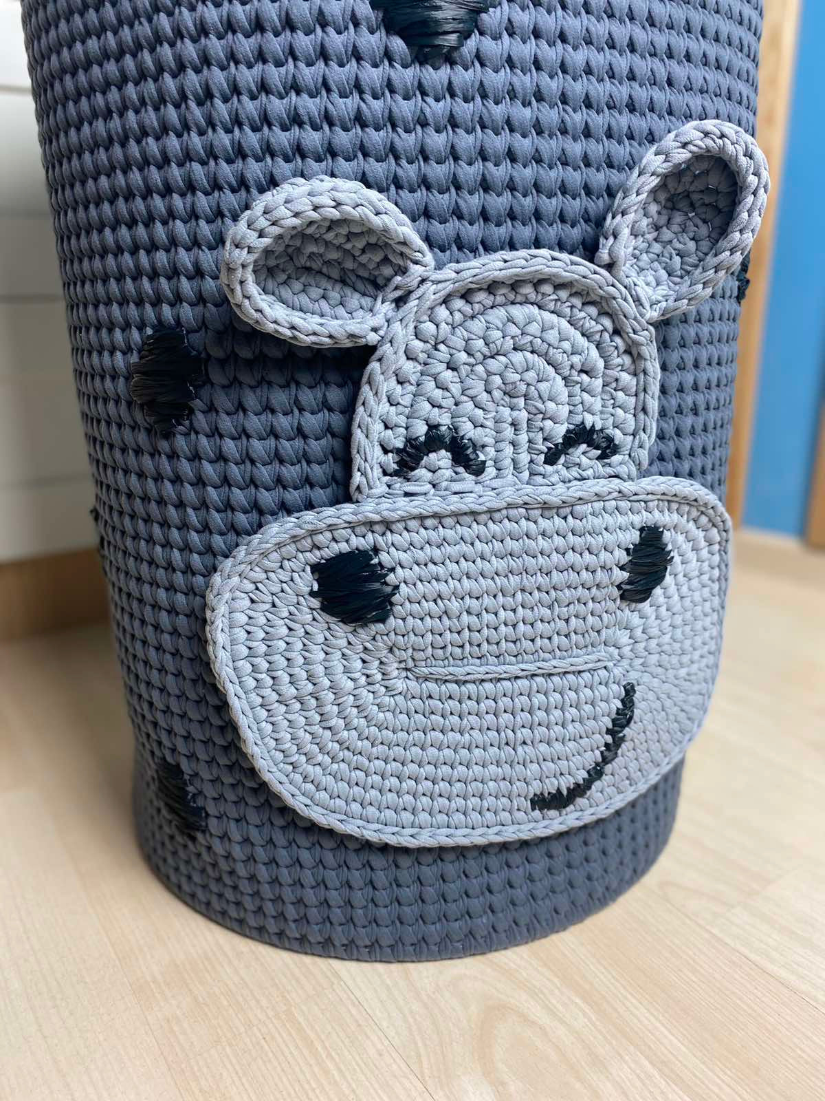 Made from sturdy knitted yarn, this basket will keep things tidy with style. Its design will not only bring joy to children's hearts but also add a cozy touch to any corner of your home.