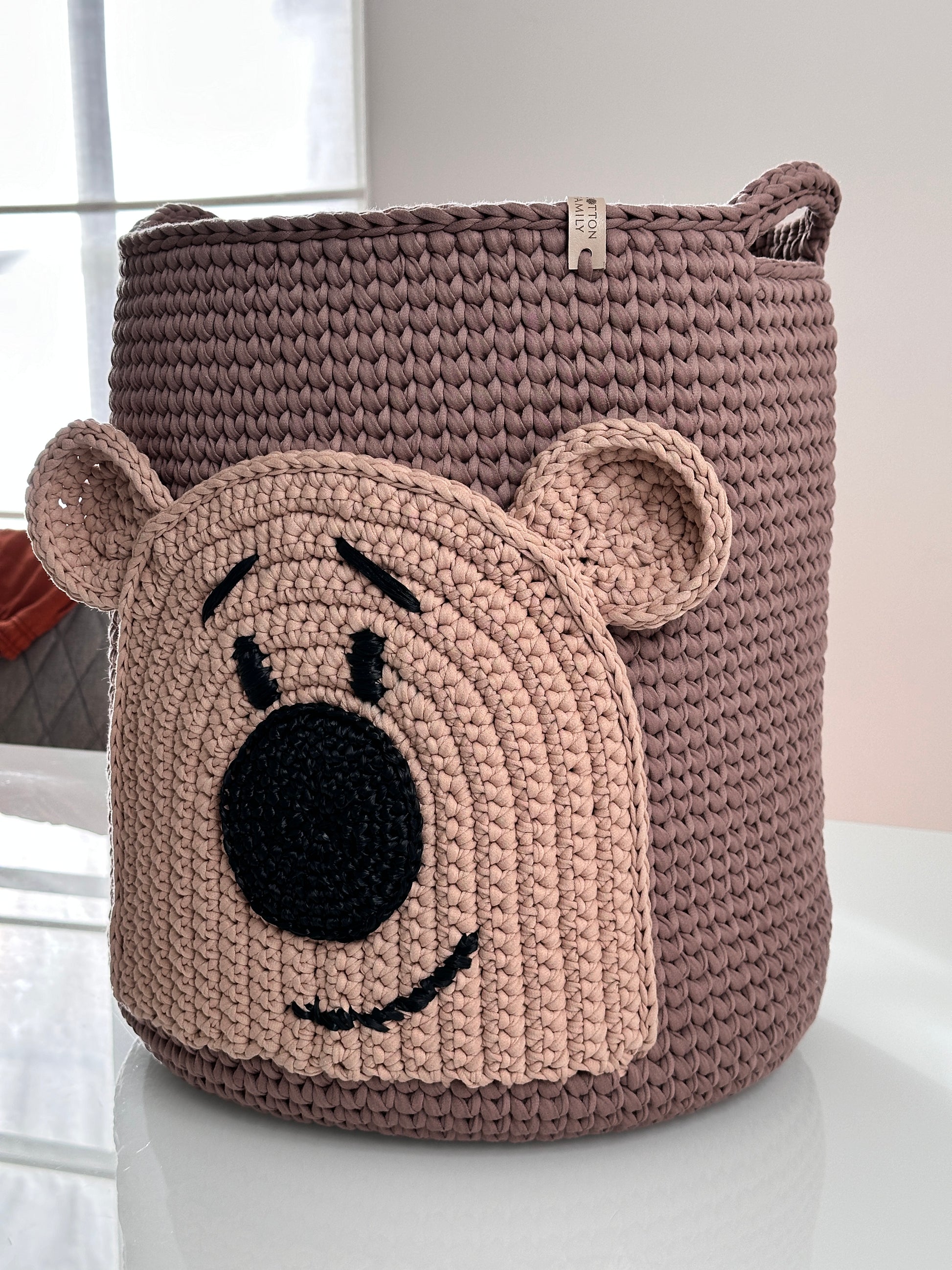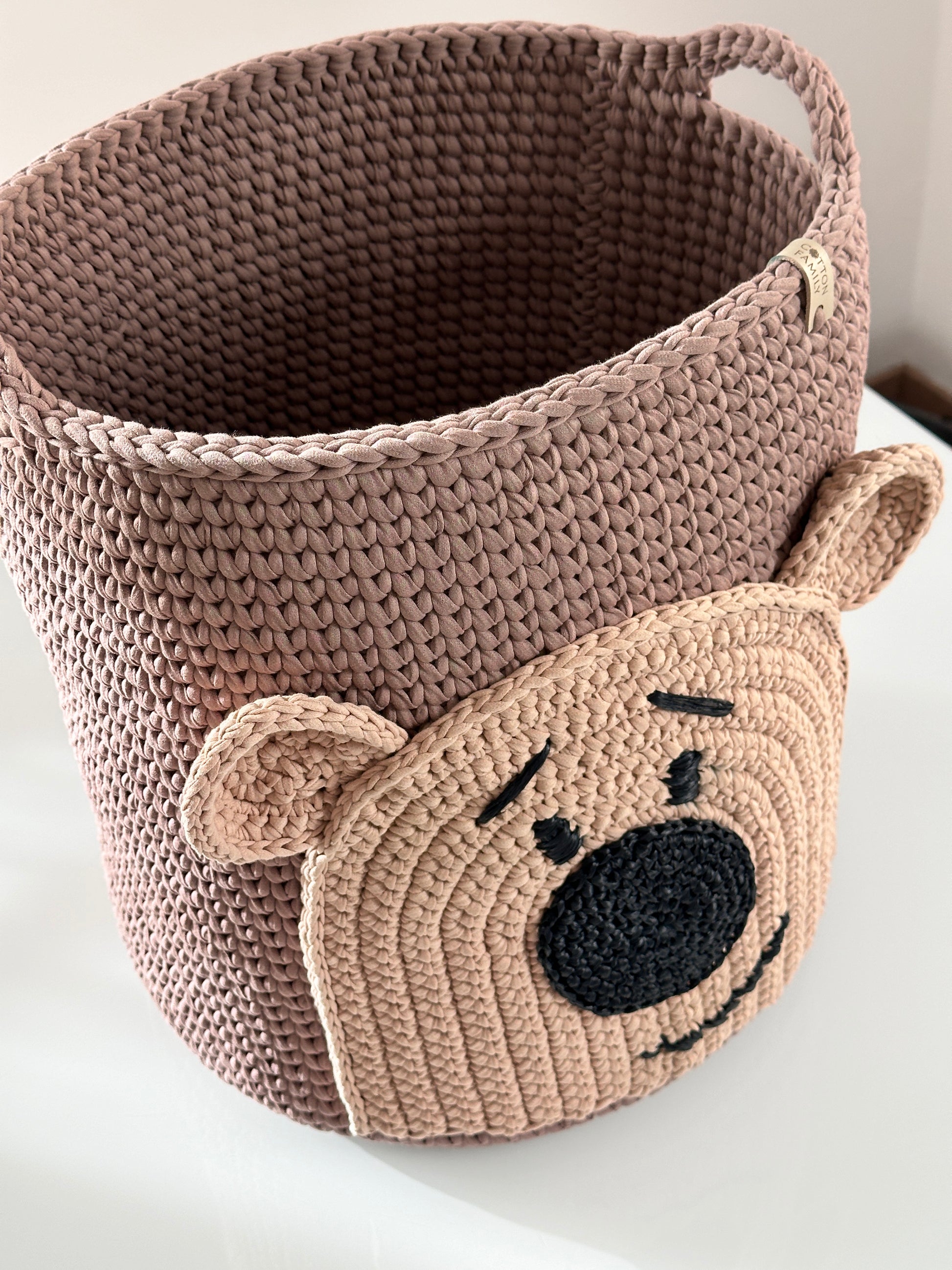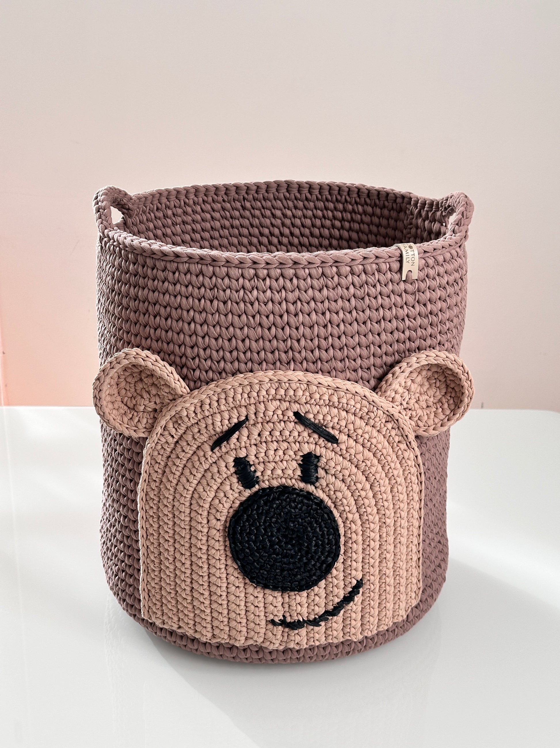 A basket with a cheerful bear print is the perfect choice for organizing children's toys, warm blankets, or books.