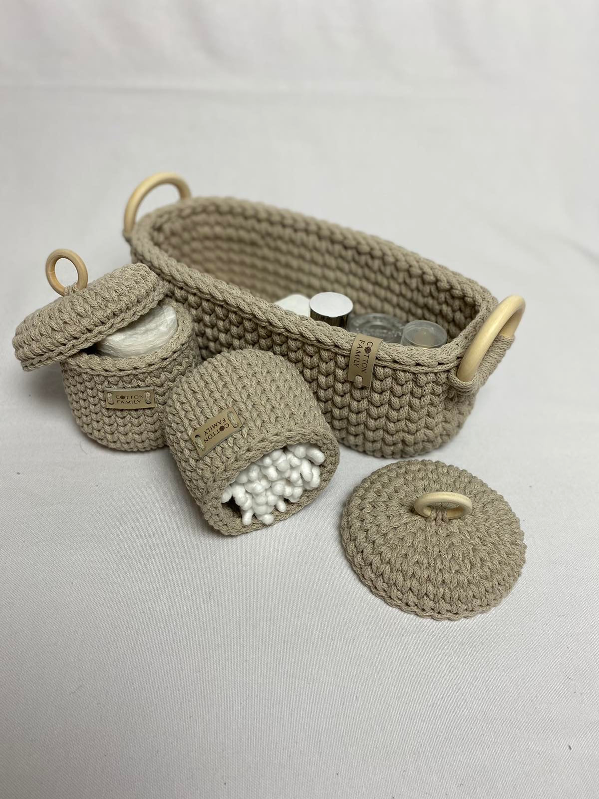 Ensure your home is stylish and organized with this elegant set of handmade storage baskets made from natural cotton yarn.